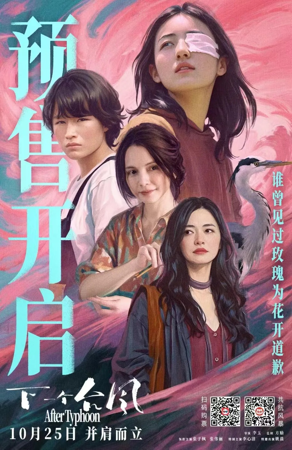 由李玉执导,方励监制,张子枫、张伟丽领衔主演,李心洁特别主演,姚晨特邀出演的电影《下一个台风》,今日正式发布终极预告与终极海报,并同步开启全国预售。影片将于10月25日登陆全国院线。此次曝光的终极预告,以极具情绪张力的视听语言,聚焦张子枫、张伟丽、李心洁、姚晨所饰演的四位女性角色,细腻勾勒出她们在命运风暴中的思想碰撞与情感联结。同步释出的终极海报则大胆采用粉色油画风格,将四位女性角色置于一场视觉与情感的风暴中心,既传递出影片温暖治愈的内核,也展现出澎湃的女性力量,引发全网强烈期待。影片讲述了在毕业聚会中遭受老师侵害的城市女孩林沫沫(张子枫饰),与岛上土生土长的失语女孩阿汐(张伟丽饰)意外相遇,彼此支撑,共抗人生台风的故事。