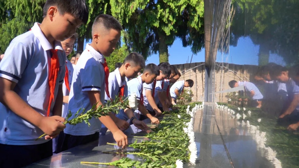 默哀毕,少先队员献唱《我们是共产主义接班人》,清脆而坚定的歌声,表达了继承革命先烈光荣传统、当好接班人的远大志向。