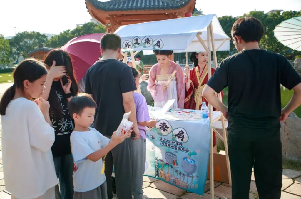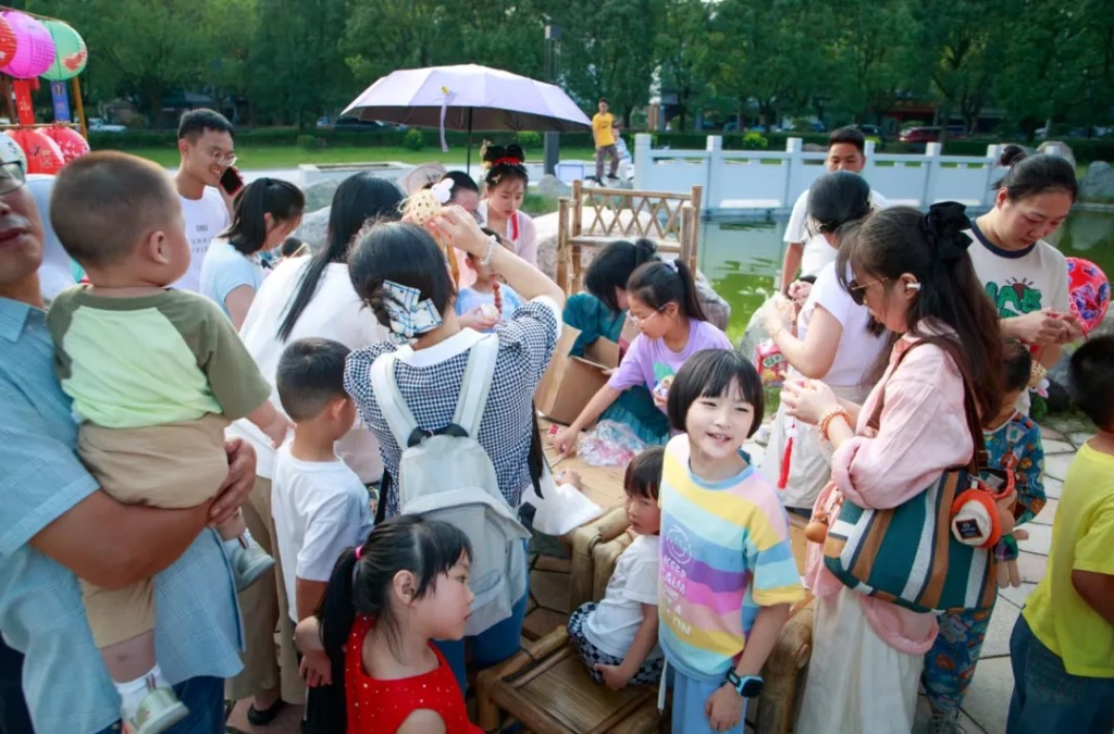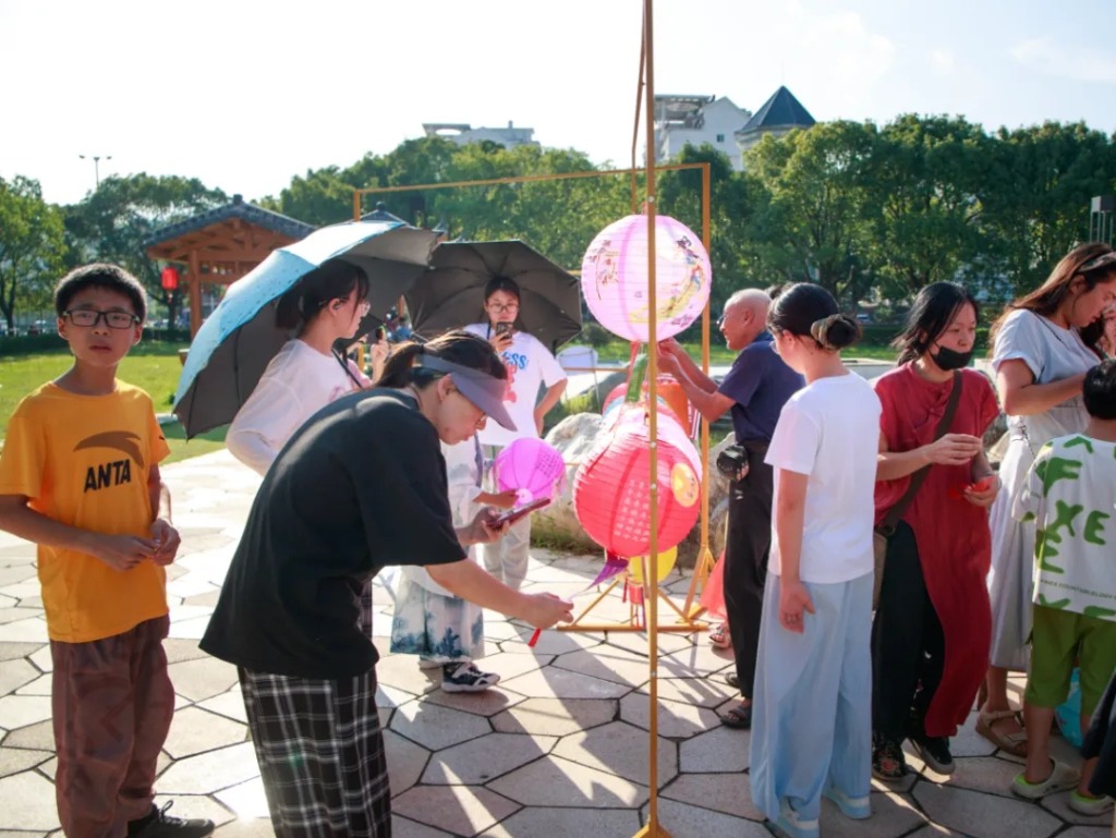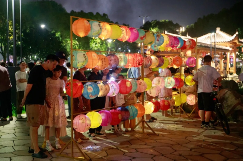 民俗体验区同样人流如织——竹编区域,一盏盏灯笼在市民群众手中渐次成型;非遗中秋手工漆扇绘制区里,大家挑选心仪的颜料,晕染形成自然纹理,创作出独一无二的作品,沉浸于非遗文化的深厚魅力。