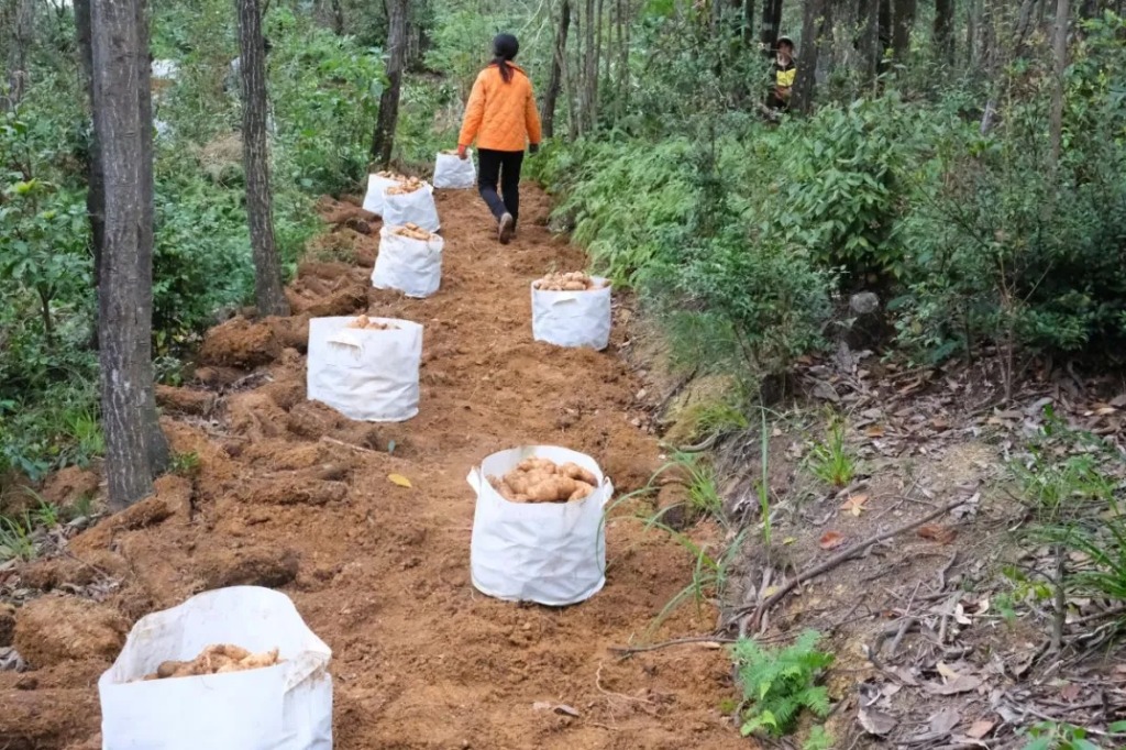 为解决林下地形复杂、采收效率低的问题,宗远农民专业合作社引进了一套完整的轨道运输系统。通过轨道小车运输采收林下农产品,大幅提升了采收效率,为后续精细分拣和加工争取了更多时间,进一步推动了天麻产业在品种培优、品质提升、品牌打造和标准化生产方面的进步,增强了市场竞争力。