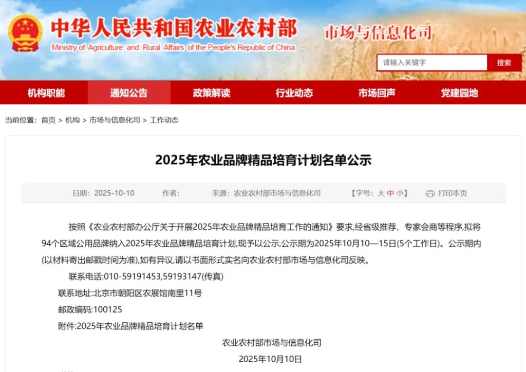 2025年农业品牌精品培育计划公示名单