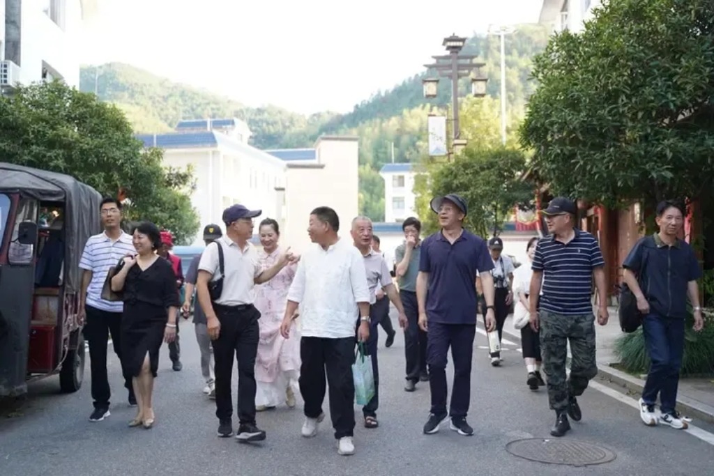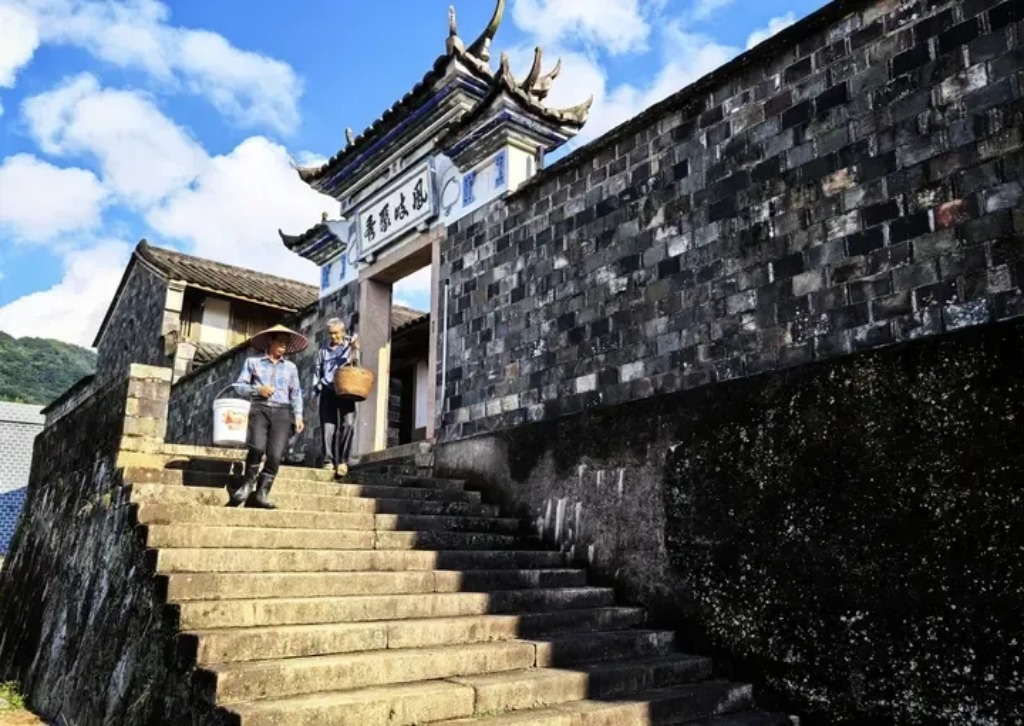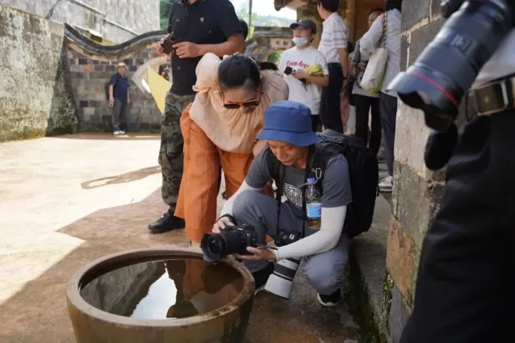 翌日清晨,采风团迎着朝阳前往黄柏乡,首站抵达长冠村。这个“中国传统村落”藏在群山之间,完整保留了元明时期的“北斗七星”村落布局,村中七口古井对应星辰方位。仿古木护栏环绕的村道干净整洁,古官道、古商铺的痕迹清晰可见,晨雾中的天星古寺若隐若现,宛如世外桃源。采风团漫步在古村落中,时而触摸古建筑的砖瓦,感受着传统村落的文化底蕴,时而捕捉村民晨起劳作的温馨画面,让长冠村的古朴与生机在镜头中绽放。