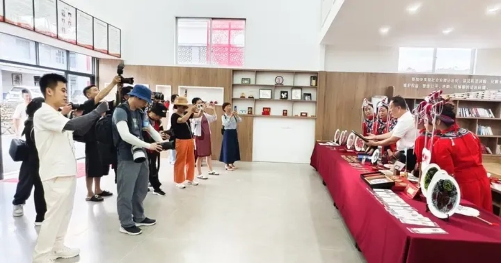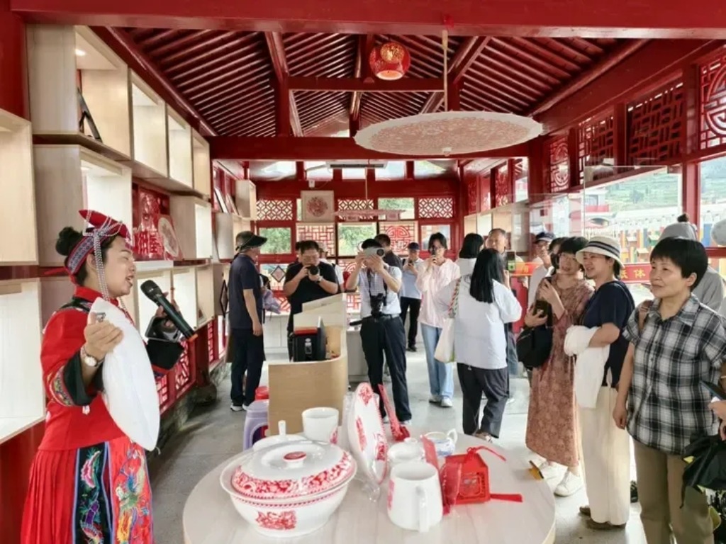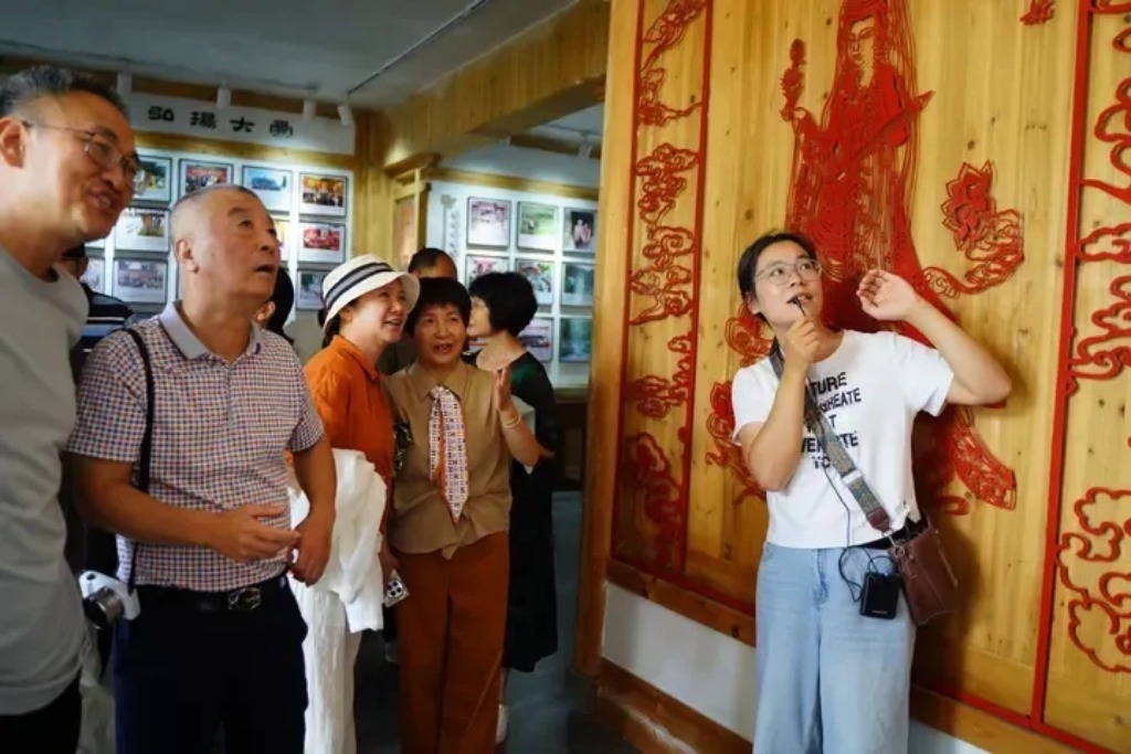 午后的阳光温暖柔和,采风团的脚步迈向城郊乡靴岭尾村。这个被誉为“剪纸艺术之乡”的村落,将传统技艺与现代生活完美融合。走进非遗剪纸工坊,玻璃窗内整齐陈列着以太子参、山水风光为主题的剪纸作品,红纸在非遗传承人的手中翻转,剪刀开合间,栩栩如生的图案便跃然纸上。作为拥有400多年剪纸文化历史的“中国剪纸第一村”,近年来,靴岭尾村通过深耕“非遗+研学”融合发展模式,每年吸引超4万人次研学团队到访,2024年文旅关联产值达600余万元,走出了一条文化赋能乡村振兴的特色之路。