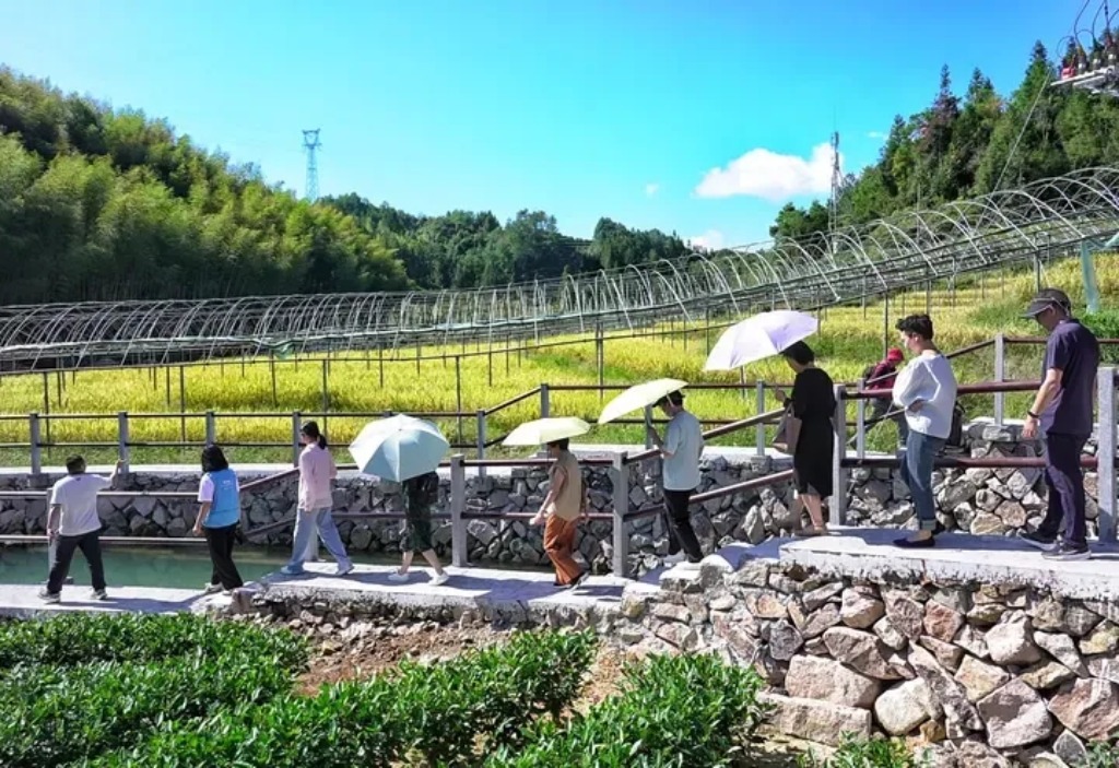 沿着山间公路前行,一片金黄的稻田映入眼帘,采风团循着秋意来到乍洋乡溪口村。村外,山峦层叠,茶山绿波“翻滚”出丰富的层次;村口,如新月的永安桥横跨潺潺碧波之上,桥影与波光交融成景;村内,古城墙、古民居在阳光下弥漫着古朴的韵味……漫步溪口村,处处都能感受到远离尘嚣的祥和与安逸。
