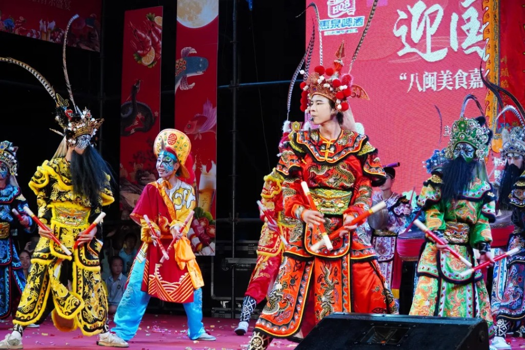 九大馆外广场举办“八闽美食嘉年华·千鲜霞浦”暨啤酒音乐盛宴,60个美食文创摊位汇聚霞浦鱼丸、烤紫菜披萨等特色鲜味,搭配潮汕英歌舞、畲族文化展演等非遗表演,每日主题晚会从MJ模仿秀到舞力狂欢夜精彩不重样;牙城镇、沙江镇开展斗门大鼓、杨氏鱼灯、传统“曳石”等中秋非遗活动,霞浦二中少年团组成的新锐战队展现非遗传承活力,让传统文化与现代体验碰撞出火花。