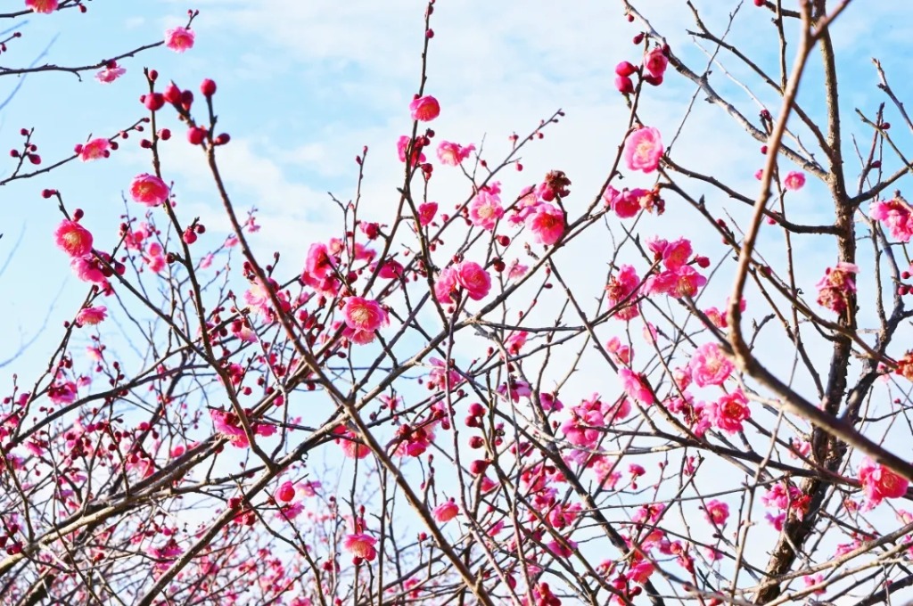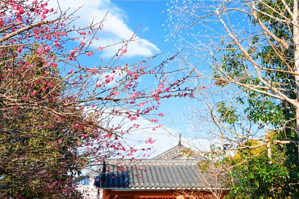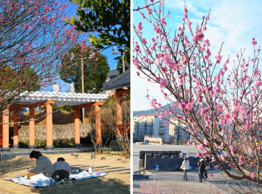 梅林与嘉馨民俗文化园的白墙黛瓦相映成趣