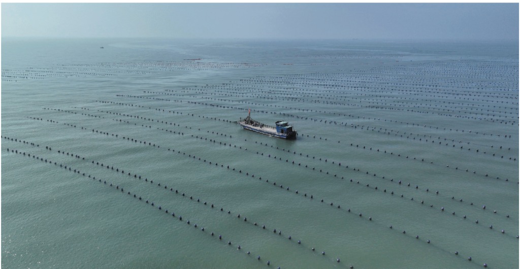 “躬耕”万顷碧波,“放牧”蓝色粮仓。近年来,福鼎大力推进生态化、标准化养殖模式,通过科学规划养殖海域,不断加大技术和资金扶持,持续提高水产品质量养殖效率与水产品质量,推动海洋渔业养殖向深远海挺进。目前福鼎生蚝养殖已逐步拓展至太姥山七星岛周边海域、硖门至嵛山海域等深远海区域,全市生蚝养殖面积约1万亩,年产量约4.5万吨,年产值约2.25亿元。