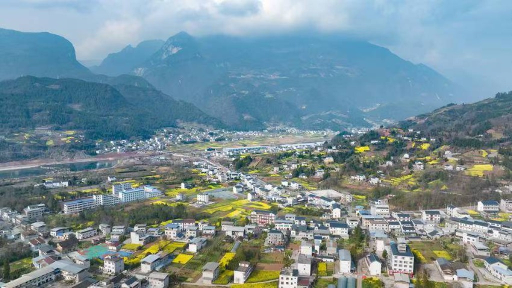 这股春意,也传到了老百姓的家门口。高铁新区周边,一栋栋具有巴东特色的民居被油菜花海围着。推开门就是景,走出去就像进了公园。金色的花海和白墙黛瓦的房子配在一起,看着格外舒坦。村里人在田里忙活,或者在花间走走转转,日子过得自在。