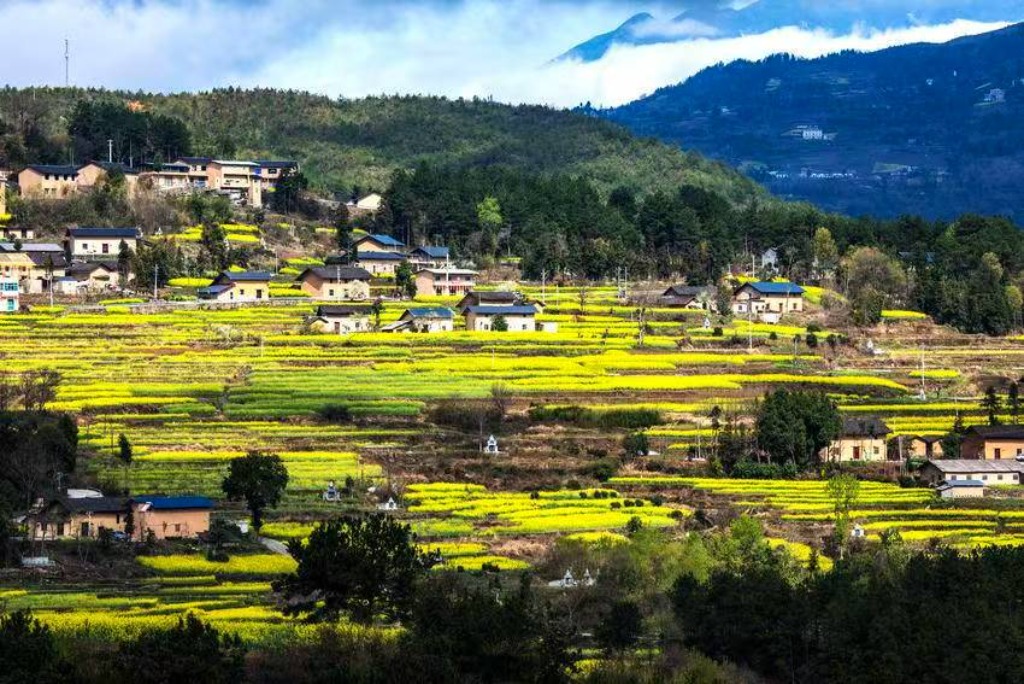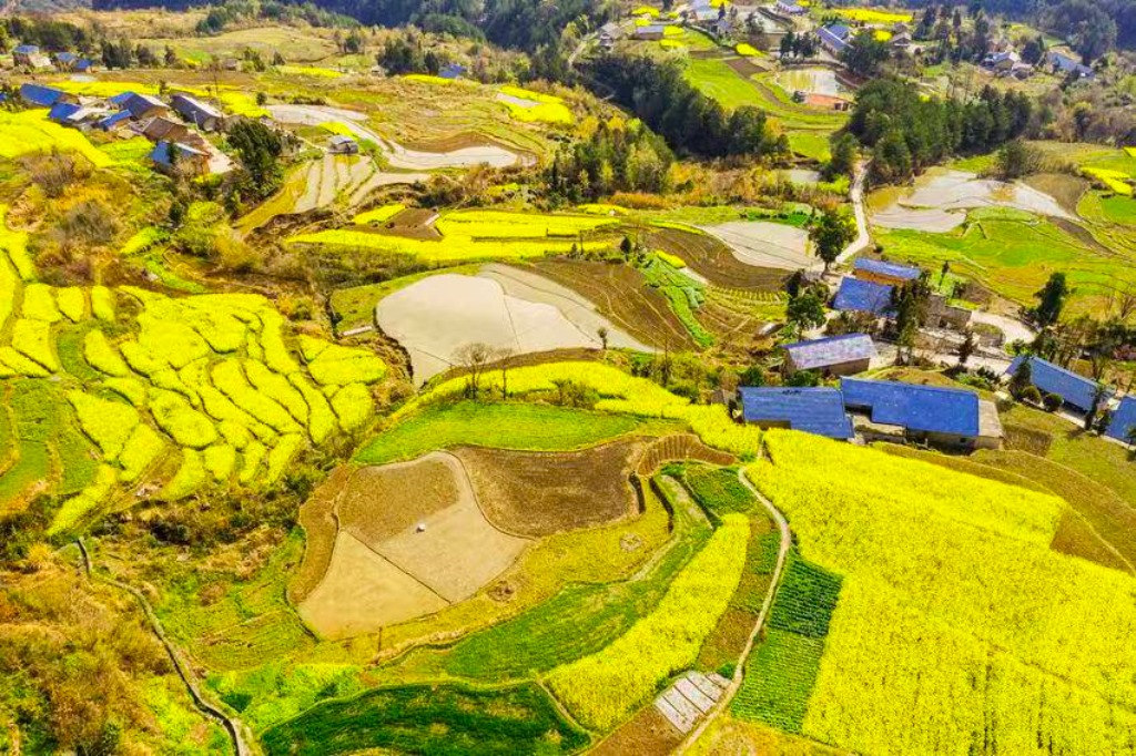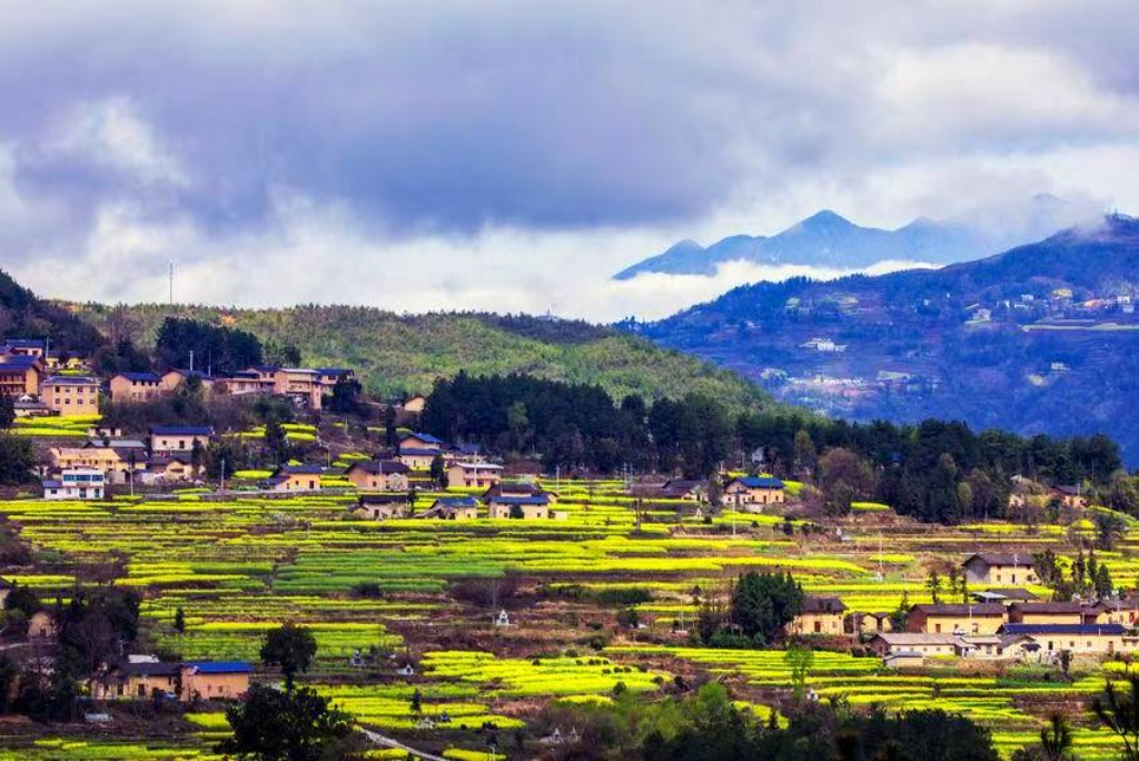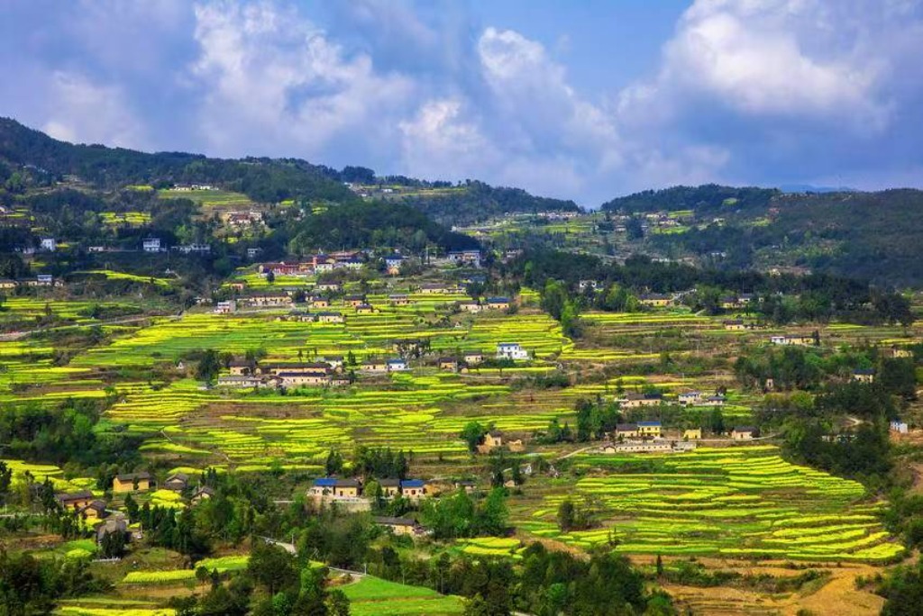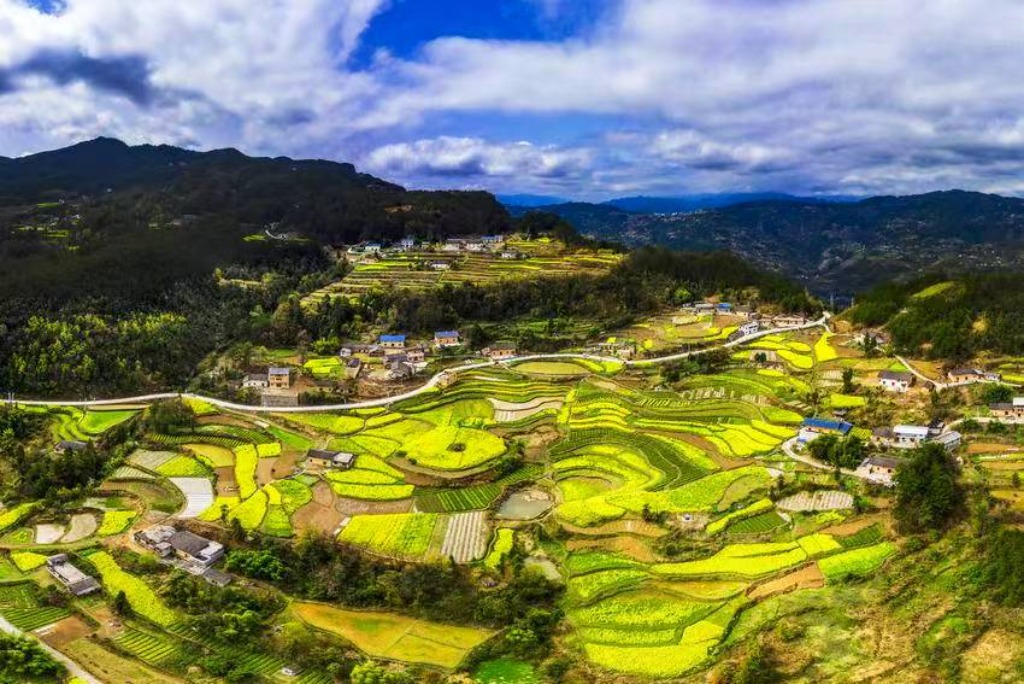 牛洞坪既是一首史诗,也是一曲颂歌。四季都是美景,尤以春天最佳,蓝天白云浮现在油菜花海上,彩蝶蜜蜂跳跃在朵朵花蕊里,共享花园散落在各家各户前,在层层梯田的勾勒下如诗如画,游客们穿行其间为美图演化出美妙动感。