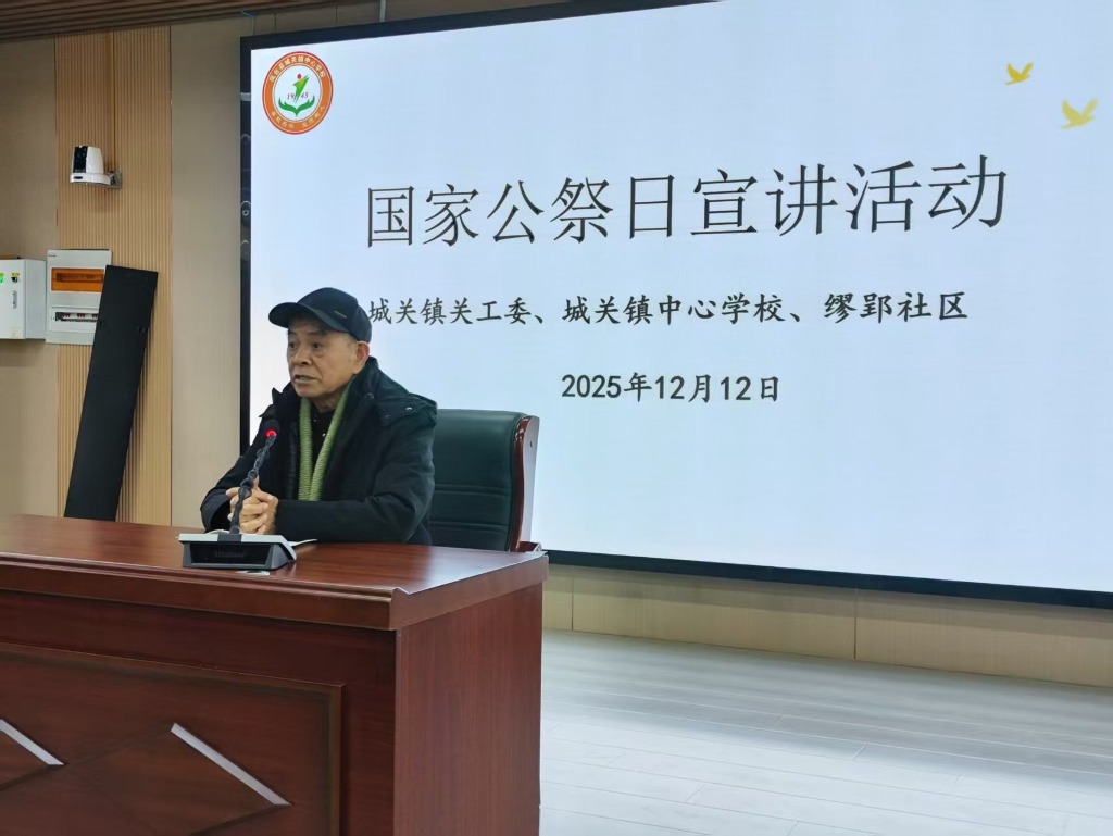 本网讯(通讯员 胡依玥 胡仲昌)12月12日,天色阴沉,凤台县城关镇缪郢社区关工委组织社区“五老”人员和志愿者,走进城关镇中心校开展“国家公祭日”宣讲活动,城关镇关工委领导应邀参加了这次的活动。