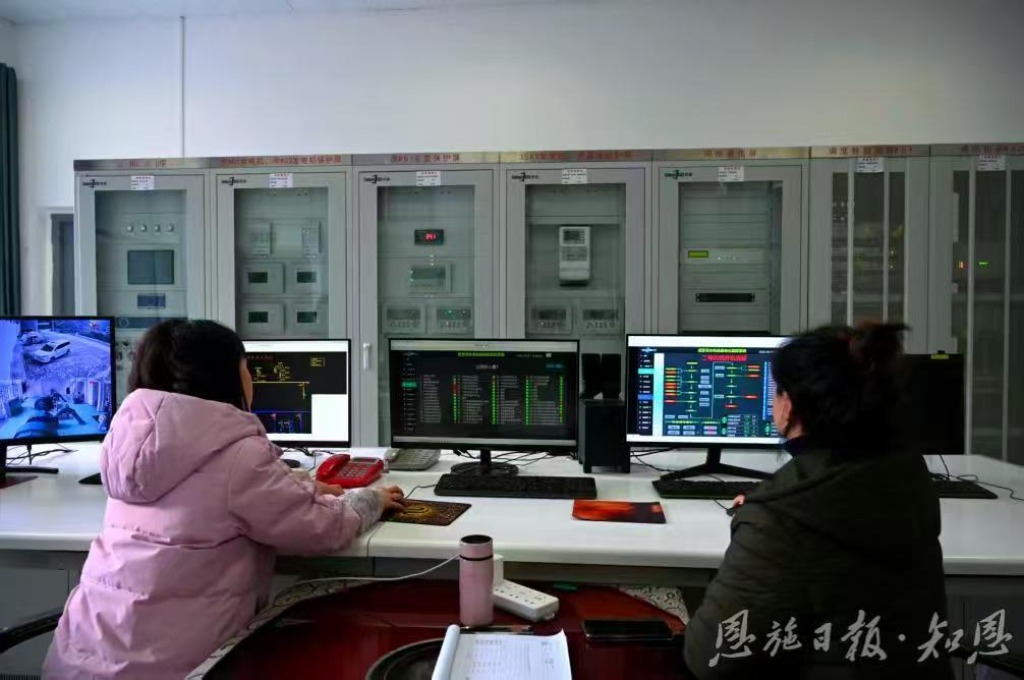 (在虎牙河水电站中控室,工作人员正在监控设备运行情况)