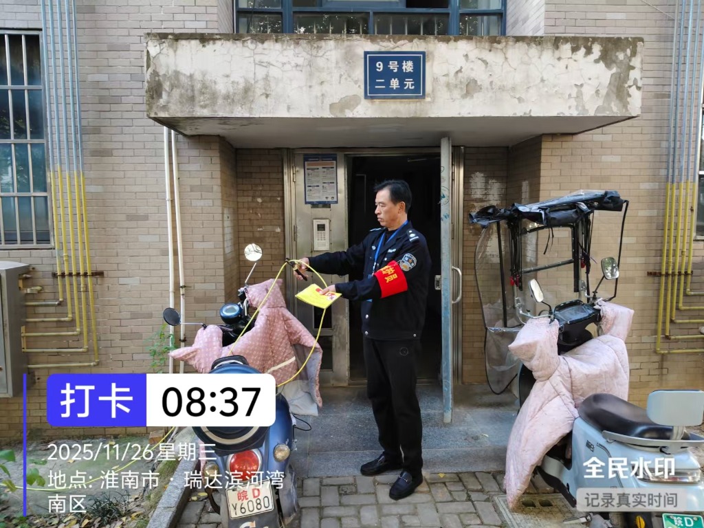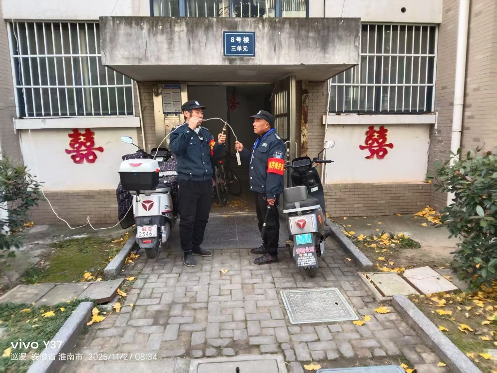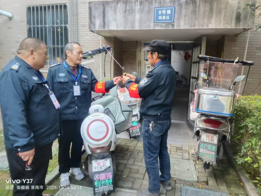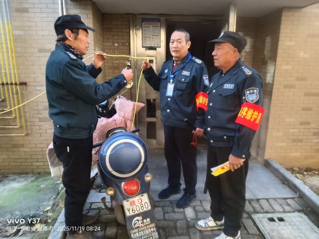 本网讯(通讯员 胡依玥 缪保娟)12月9日,凤台县城关镇缪郢社区组织2名网格信息员深入到各辖区,配合小区秩序维护员,对各小区楼道内进行安全巡查,查看是否使用空中管线给电瓶车充电。
