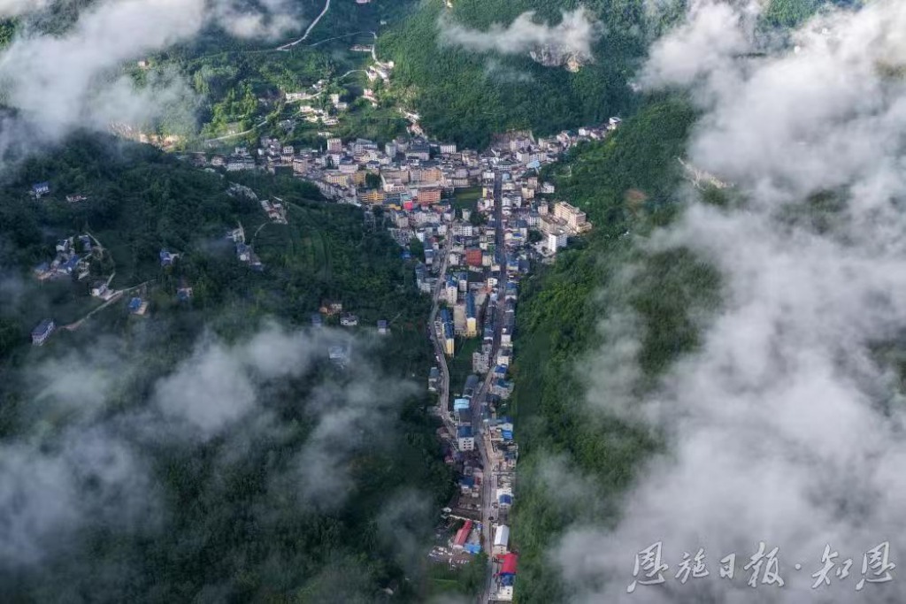 (巴东县清太坪集镇,群山环绕、绿林掩映,美丽如画。(吴以红 摄)