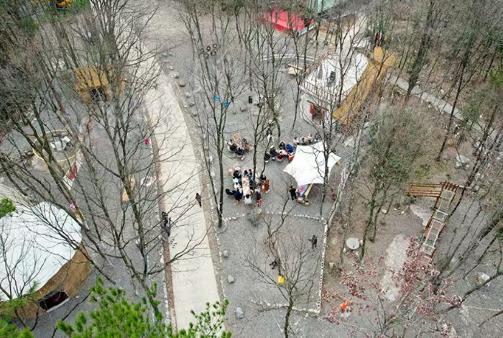 “像林间以树木为支柱搭建的小屋、老门板改造的餐桌、猪食槽改成的洗手池,还有镌刻着‘70后’‘80后’童年印记的老石磨,都是我特意设计的‘乡愁符号’。”谭海鸥介绍。当乡村烟火气与设计巧思相撞,这些旧物便有了新的生命力,承载起一代代人心底最温暖的乡愁。