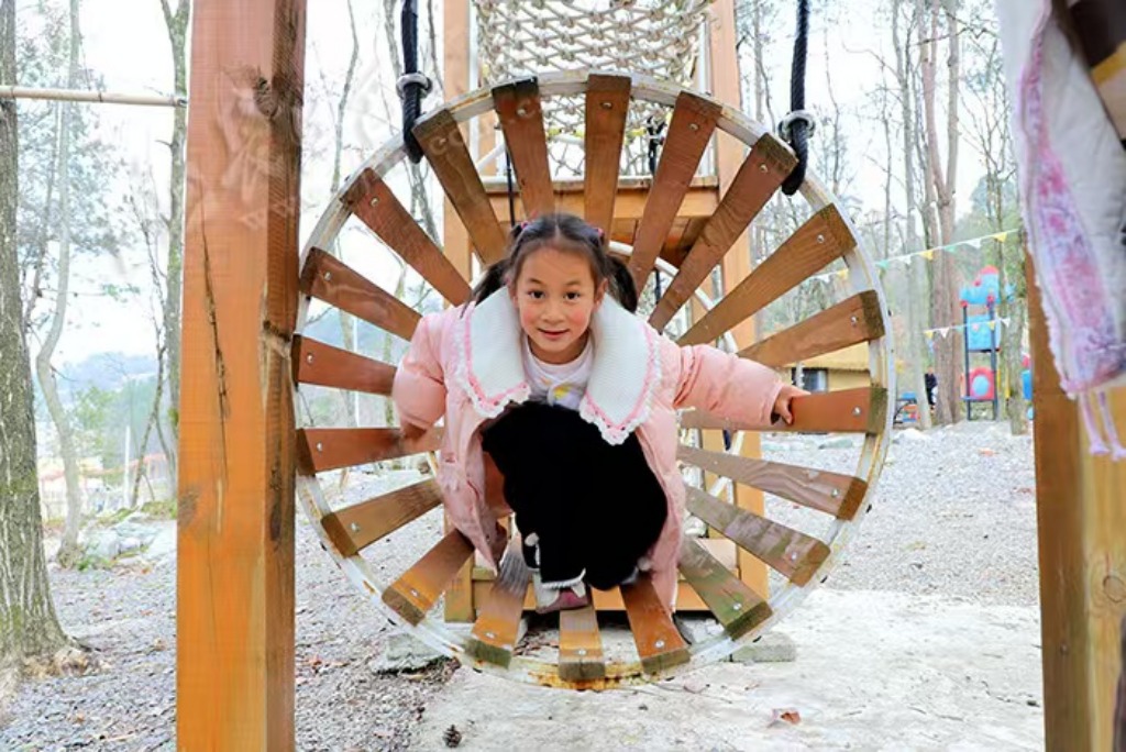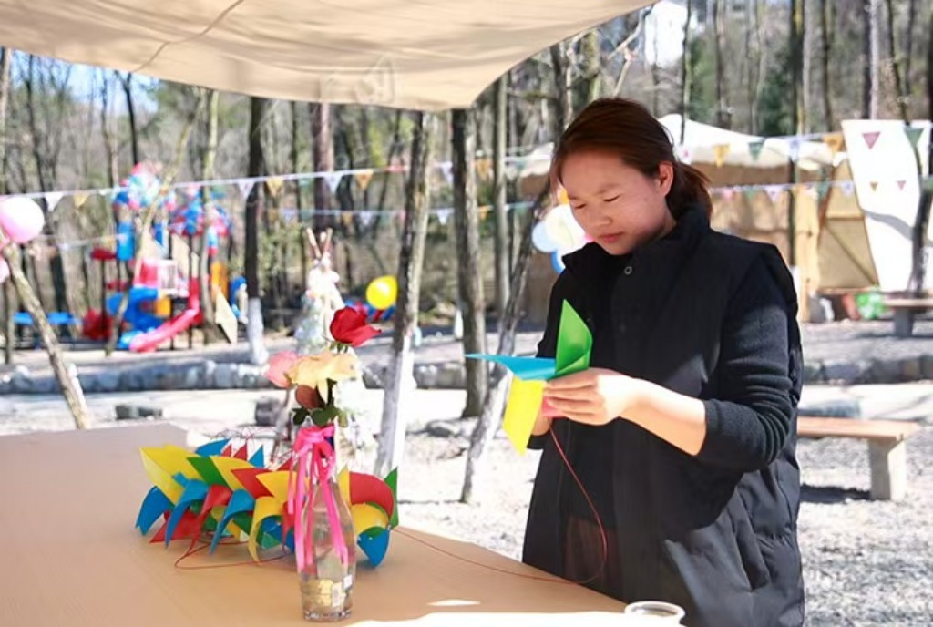 为让“小树林”贴合当地自然禀赋、彰显乡土特色,谭海鸥将在浙江所学的研学理念与运营经验,深度融入家乡的山水风光与土家文化之中。她结合林间树木的自然分布,科学划分出科普课堂、休闲休憩、非遗体验等功能区域;秉持“旧物新生”的理念,收集老物件融入场景装饰,用设计巧思唤醒人们的童年记忆与乡愁;同时增设草庐、儿童游乐设施,并开辟专属农田,让前来研学的学生和游客能够沉浸式体验播种、浇水、采摘的农耕乐趣,实现研学与休闲的双向赋能。
