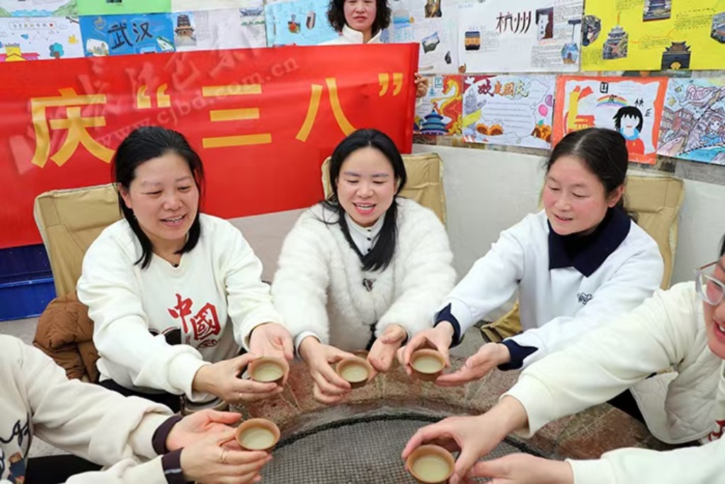 “推这个大石磨,仿佛又回到了童年,陪着外婆一起磨豆子的时光,温暖又幸福。”游客周立娥笑着说。一旁依树而建的草庐下,炭火烧得正旺,烤网上的糍粑、花生散发着诱人的焦香,游客们围坐在一起畅谈欢笑,在自然与烟火中,感受着乡村休闲的惬意与美好。