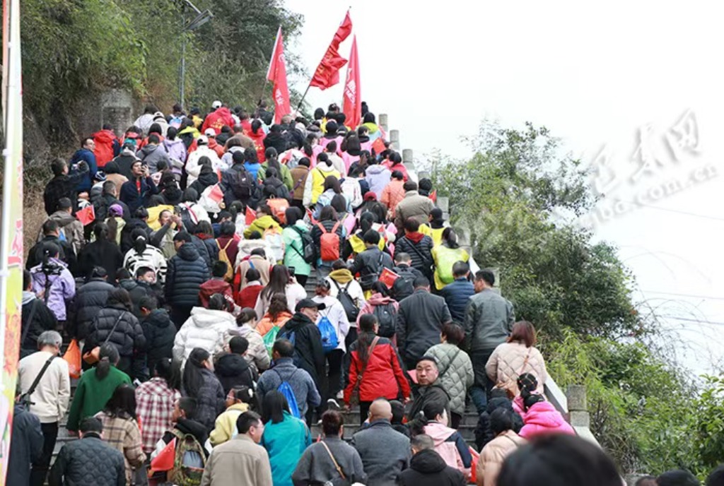 2025年12月6日,湖北省巴东县举办2025湖北巫峡口景区红叶季“我爱长江·我爱巴东·巫峡登高”活动,登山、徒步及越野跑爱好者、健身市民、旅游达人、摄影爱好者及企事业单位团体近千人参与,在红叶漫山的长江之畔共赏美景、共赴盛会。