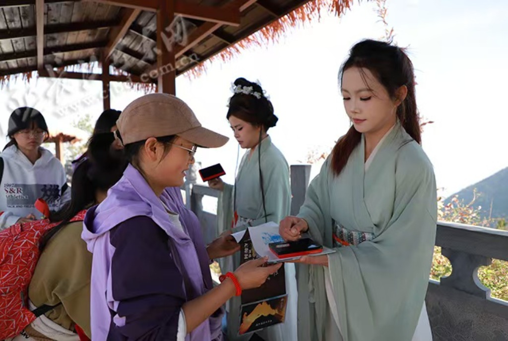 当天上午9时,选手们从徐家坪广场出发,穿行于红叶林海,途经层峦叠嶂,最终登顶“巫峡云巅”。沿途设置了5处NPC打卡点,选手与NPC互动集章后,在抖音、朋友圈、小红书等社交媒体发布活动现场视频或图文,凭点赞与评论数量叠加综合排名颁奖。