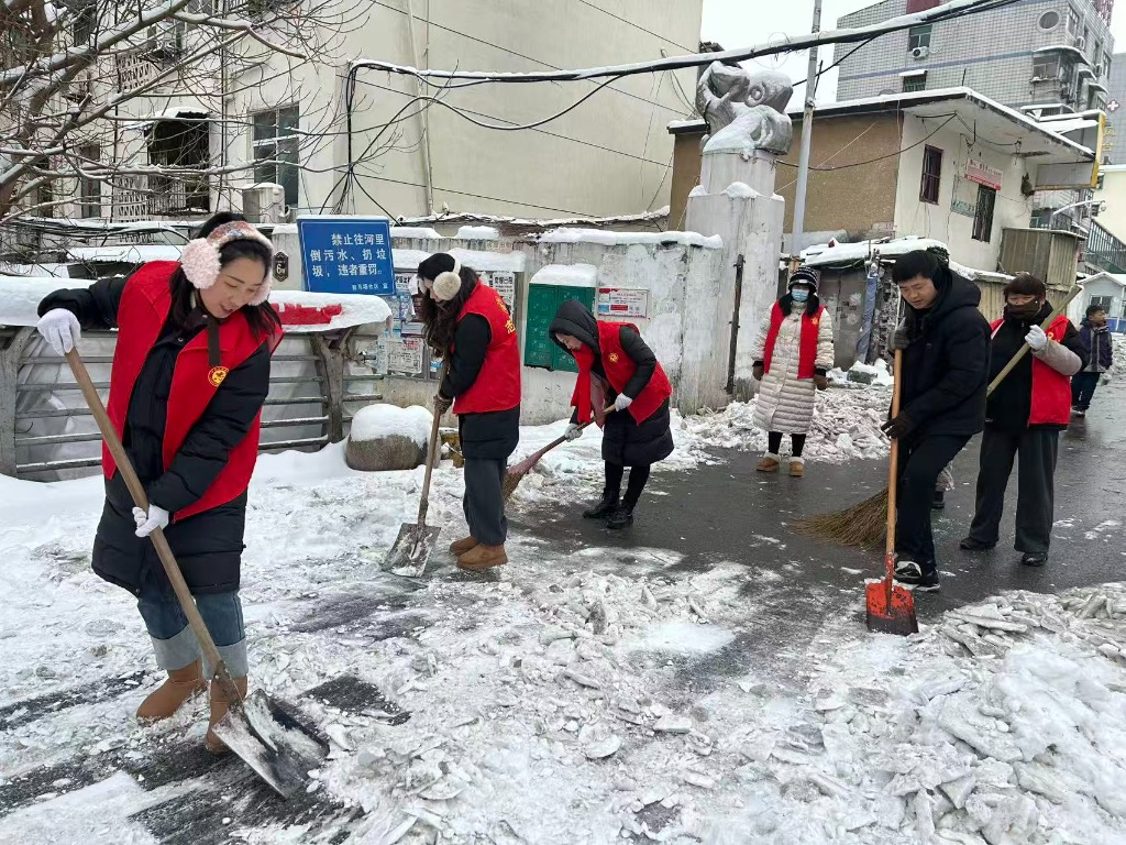 他们各自拿着除雪工具,上午10时在马场桥头集合,大家来到指定的地点,对道路上的积雪、冰块进行清除,特别是各网格内的志愿者,按照各路段的划分,把堆在路上的积雪打扫的干干净净,方便了居民们的出行。同时,也消除了道路上湿滑的安全隐患。