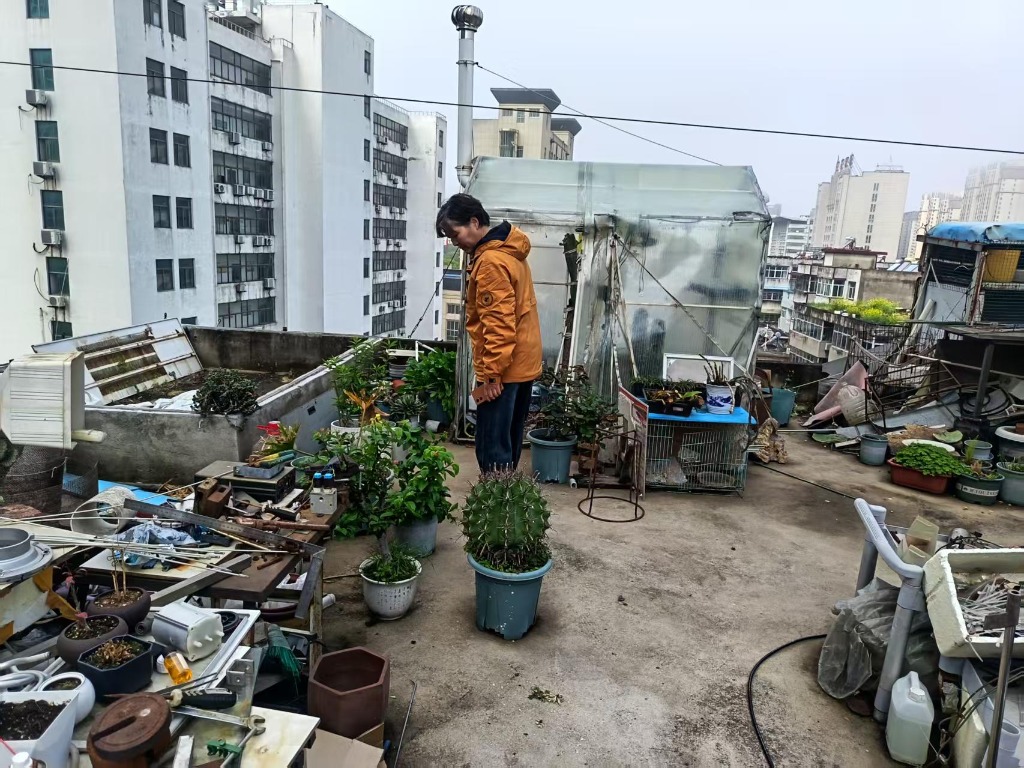 在一家小菜园内,社区铲毒小分队成员,从左到右对园内进行了认真地查看,并登记造册;在一家楼顶处,社区铲毒小分队成员,对每盆种植的花草,进行了观察,是否在花盆里种植罂粟,当场作了记录。