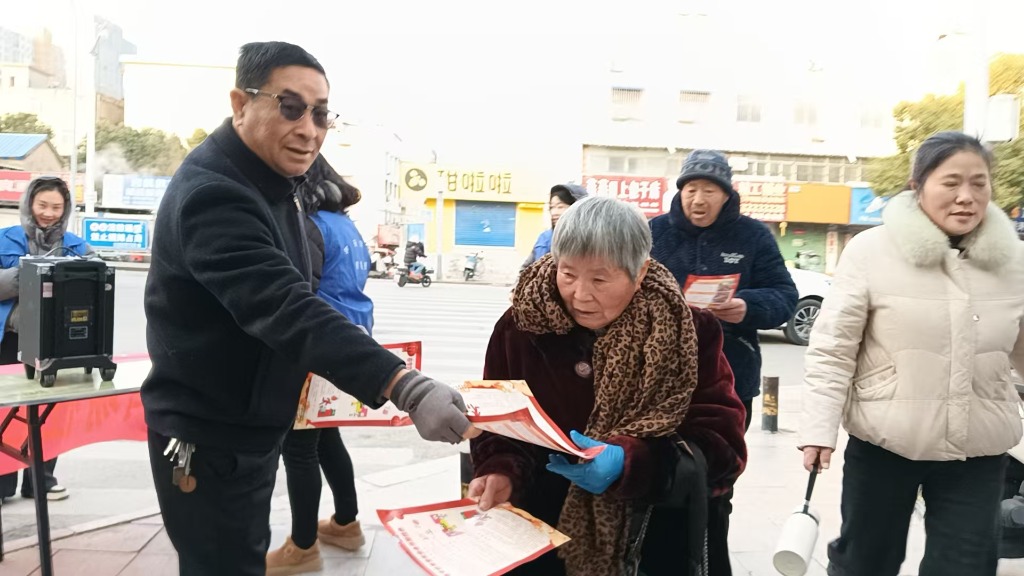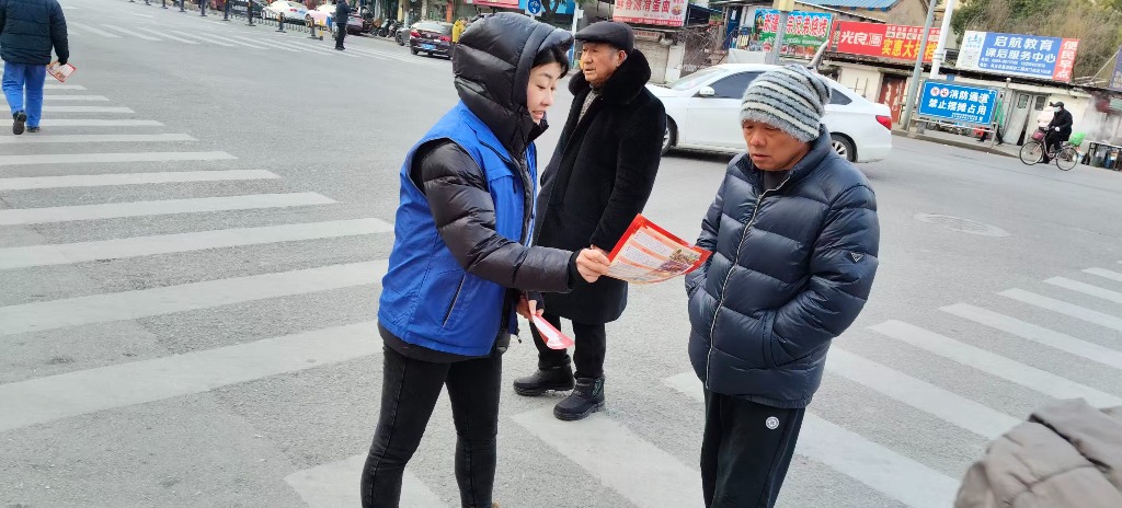本网讯(胡依玥 胡仲昌 220字)1月12日,凤台县城关镇前马场社区各网格信息员,拿着事先准备好的宣传资料走上街头,在马场桥头以东三岔路口斜对过凤台电大大门口西侧,向过往的群众发放宣传资料,大力宣传预防未成年人违法犯罪。