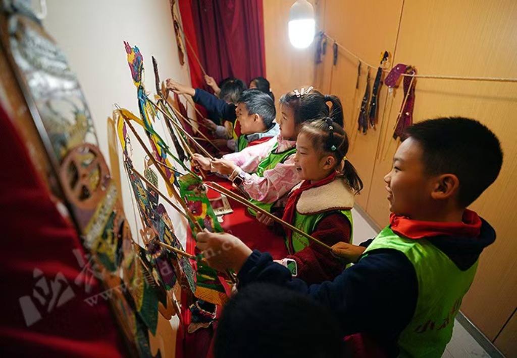 (在巴东非遗馆,学生来到这里体验皮影戏,感受非遗的魅力)