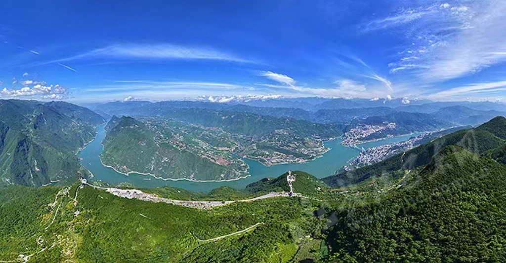(县城依偎在长江河畔,与自然山水相映成趣)