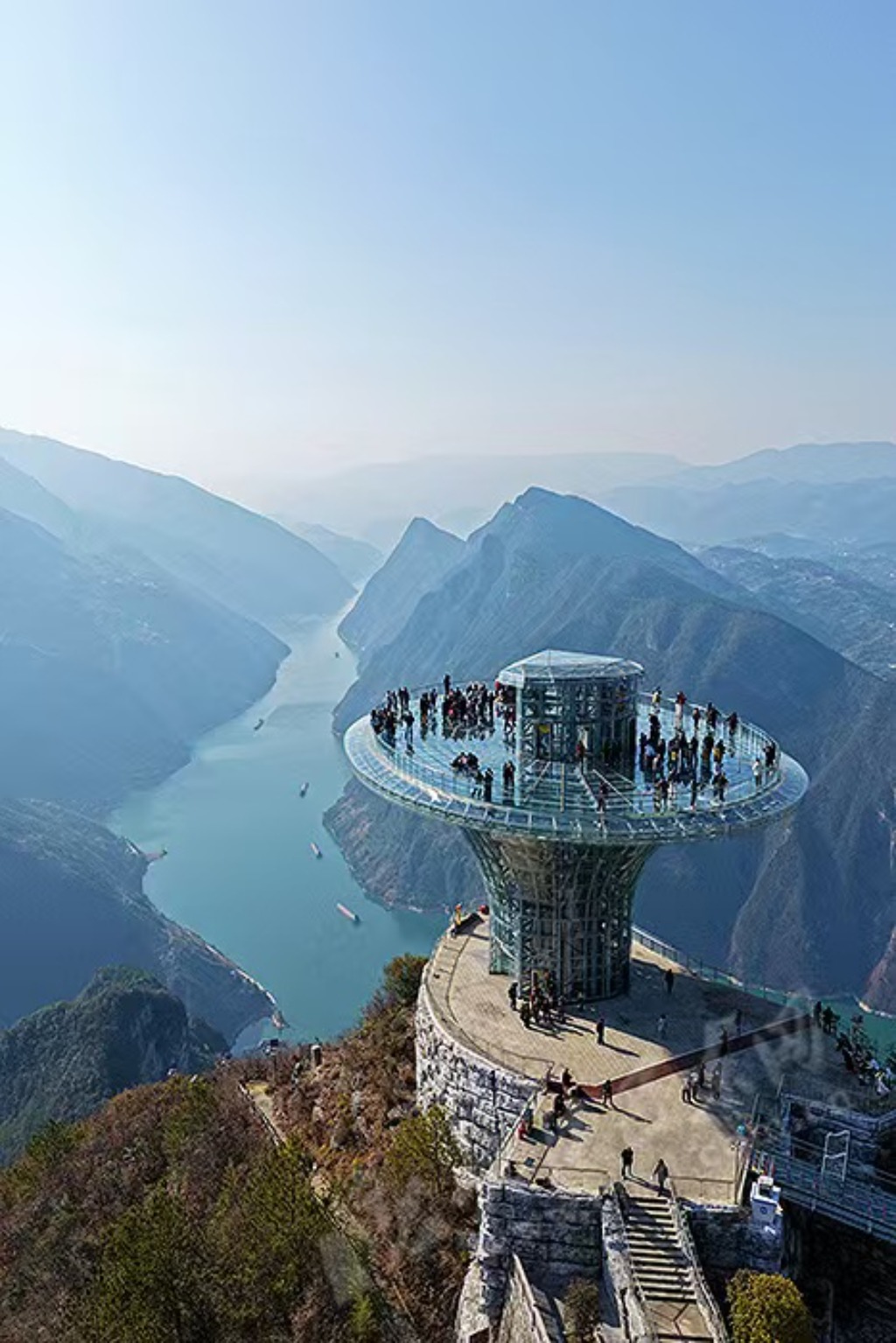 (游客在灵芝仙台俯瞰巫峡大拐弯)