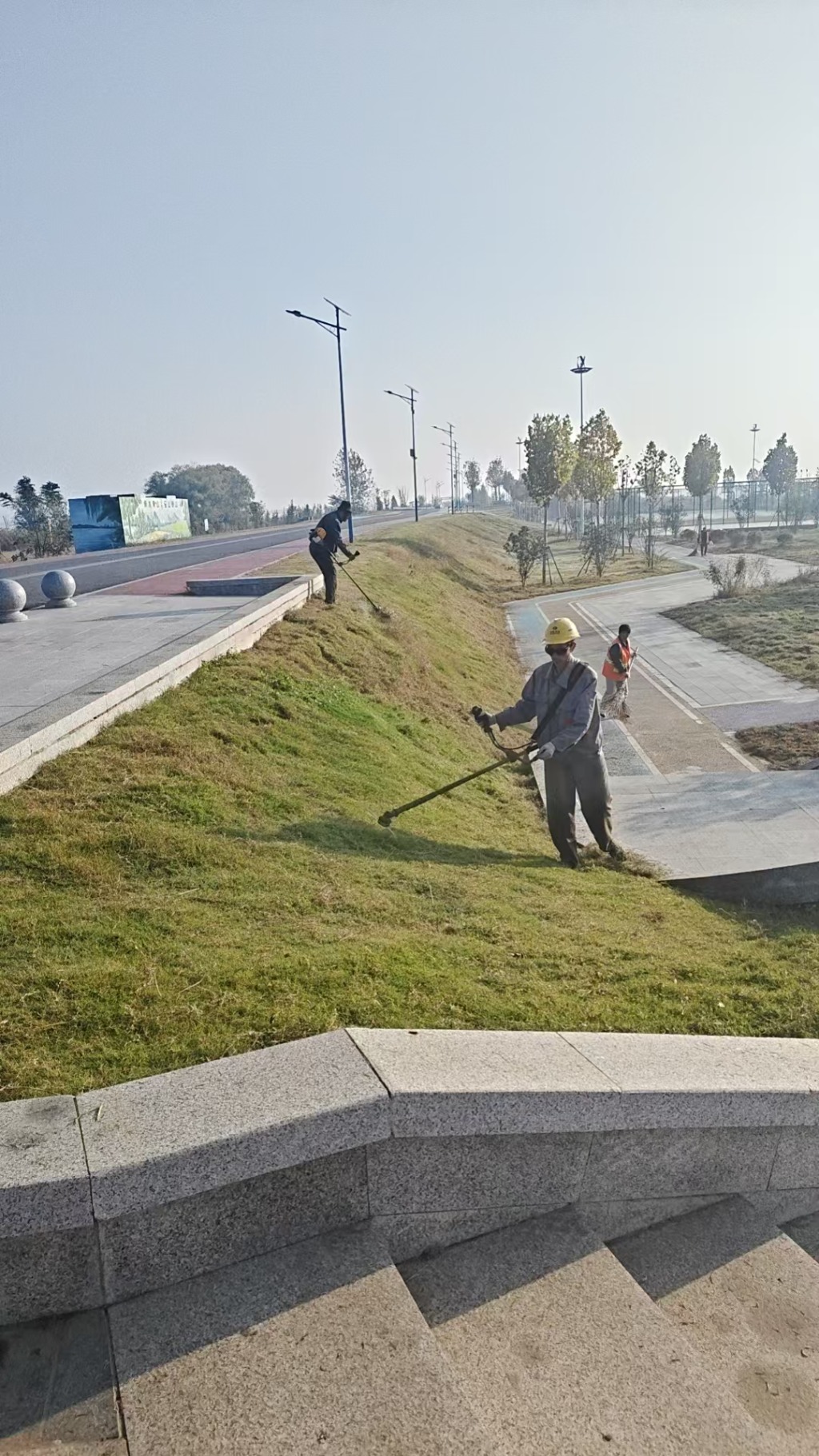 在这次草坪修剪中,顾桥镇“凤栖湖公园”养护团队展现出高度的专业与责任感。作业前,技术人员对园区进行全面巡查,因地制宜制定修剪方案。“对于边坡、树穴等机械难以触及的区域,我们全部采用人工精细修整,确保每一寸草坪都协调统一。”绿化工人告诉笔者。