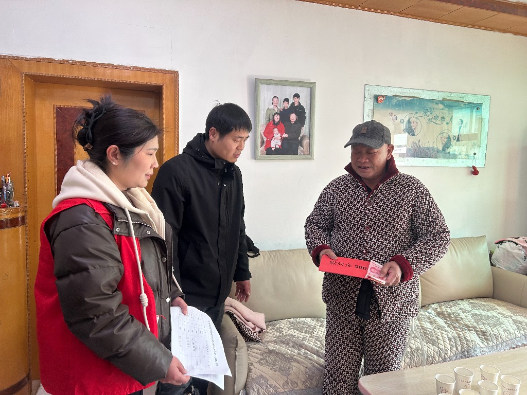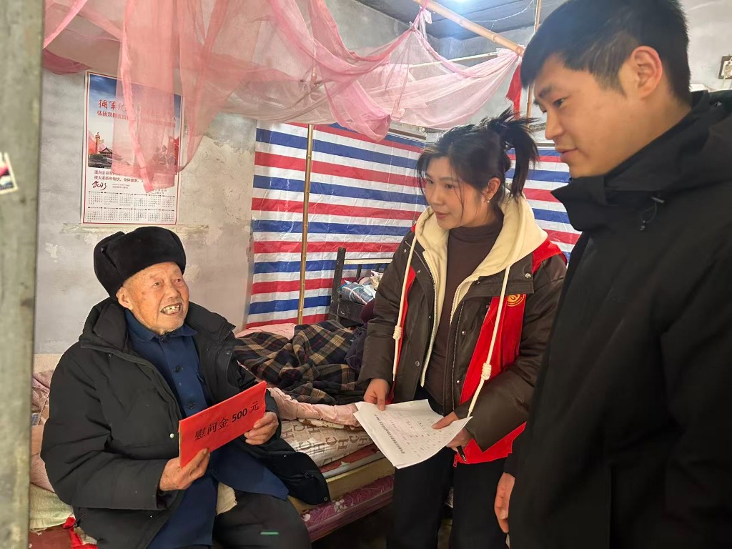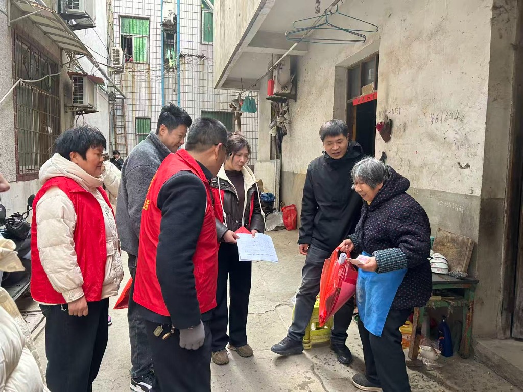 在马场桥头中心路北侧的一个小巷子里军烈属张济兰的家,城关镇驻点干部首先向张老拜个早年,询问她近期身体和生活情况,随行的社区志愿者把事先准备好的礼物,放在张老的跟前,张老激动地流下了热泪;在老村庄西头马场桥头中心路南侧一个小胡同右拐一位生活困难的老党员家里,社区主要负责人把一个大红色的新春大礼包递给他的手中,这位老党员及其家人当面表示感谢。