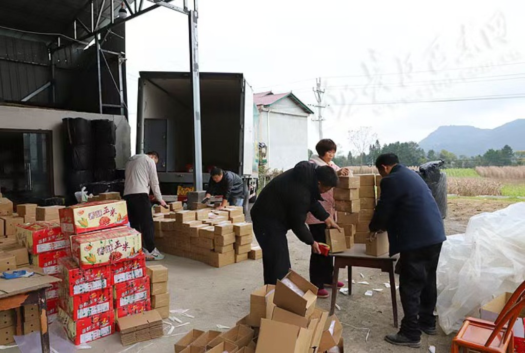 2025年11月10日上午,湖北省巴东县绿葱坡镇杨家坪村电商代元亭的仓库外一派繁忙,工人们麻利地分拣土豆、天麻等土特产品并快速装箱,邮政快递员麻利地扫码、装车,一箱箱带着乡土气息的农货即将发往全国各地。