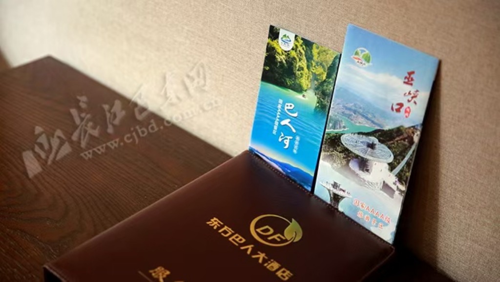 在细节之处,她巧妙融入“巴东印记”:客房内摆放柑橘、茶叶等本地特产作为伴手礼,让顾客品尝巴东味道;大堂、前台、客房、餐桌等处随处可见巴东旅游宣传手册,方便游客取阅;电子屏滚动播放巴东文旅宣传片,让客人沉浸式感受巴东之美。