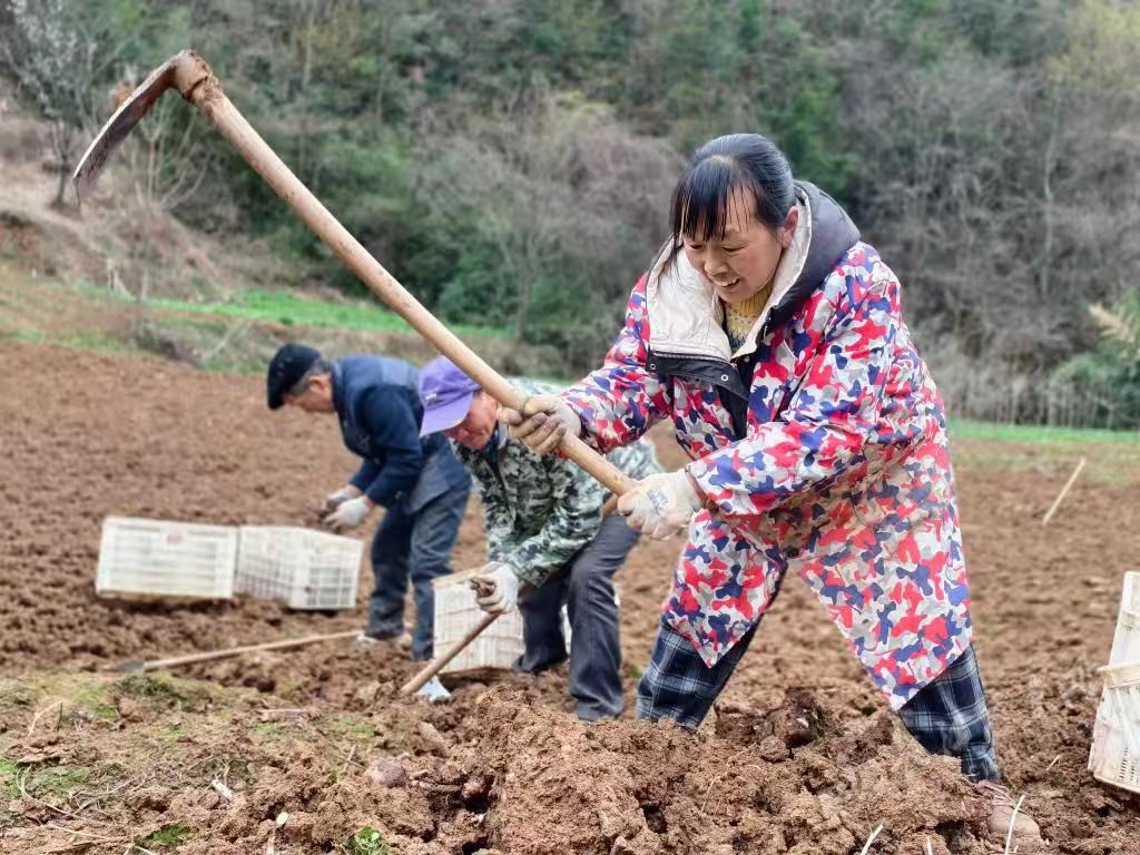 2026年3月19日,湖北省巴东县清太坪镇核桃坪村魔芋良种繁育基地,村民们采挖、分拣、装运魔芋种芋,田间地头呈现出热火朝天的春耕景象。