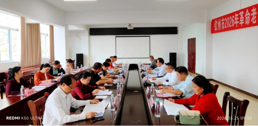 春潮涌动处,奋进正当时。2026年3月25日,钦州市革命老区建设促进会召开全市工作会议,专题学习贯彻中共中央办公厅、国务院办公厅印发的《关于加快革命老区振兴发展的意见》(以下简称《意见》),部署2026年助力老区发展振兴工作。市老促会会长周安瑶与全体常务理事、各县区老促会会长、副会长及秘书长齐聚一堂,共商老区发展大计,共谋振兴务实之策。钦州市委老干部局对会议召开十分重视,梁龙副局长出席会议并作了热情洋溢的讲话,他对市老促会和各县区老促会的工作给予了充分的肯定,希望各级老促会的同志一如既往,勇毅前行,为助力钦州老区高质量发展贡献力量。