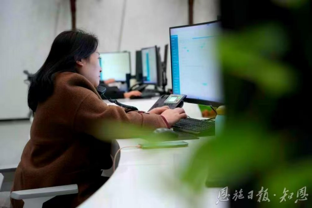 [在巴东县12345政务服务便民热线话务大厅,话务员正在接听电话)