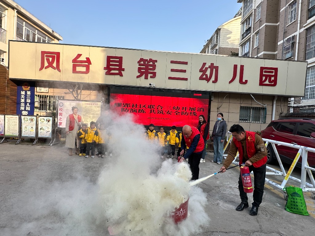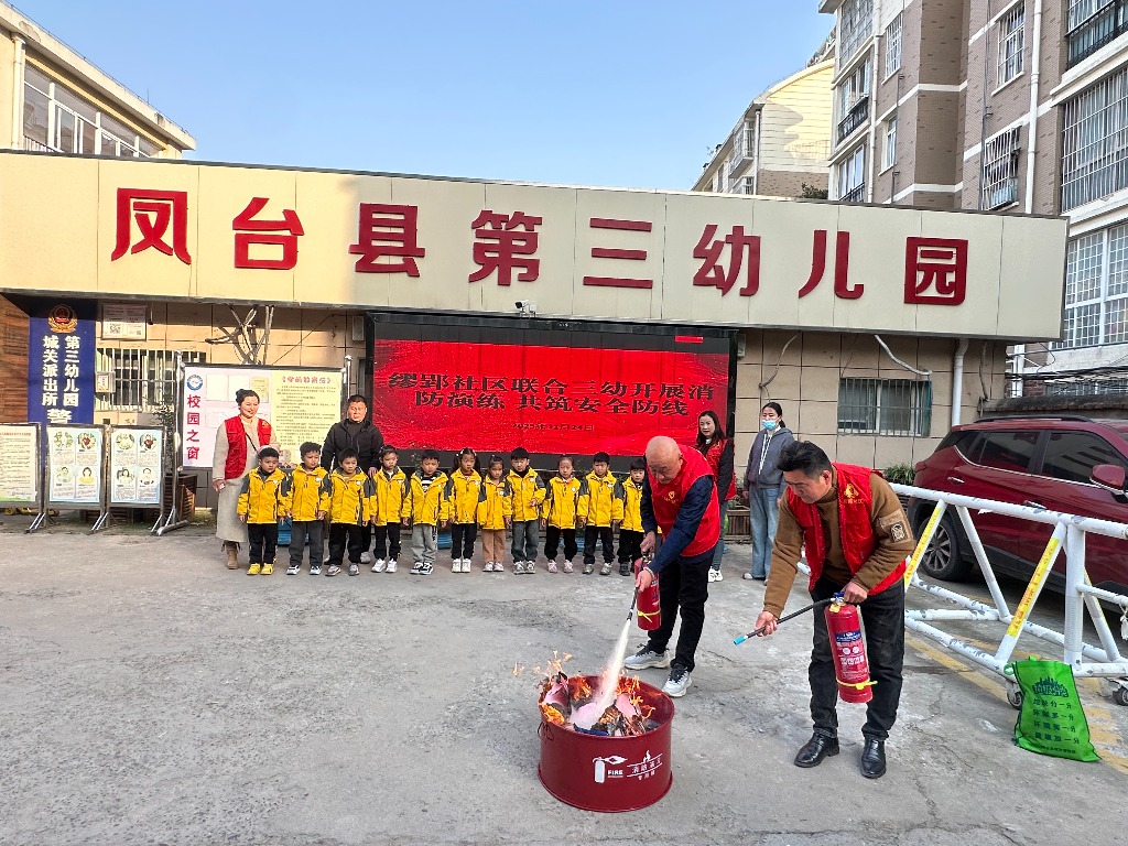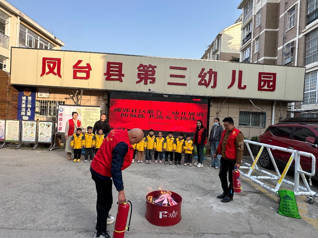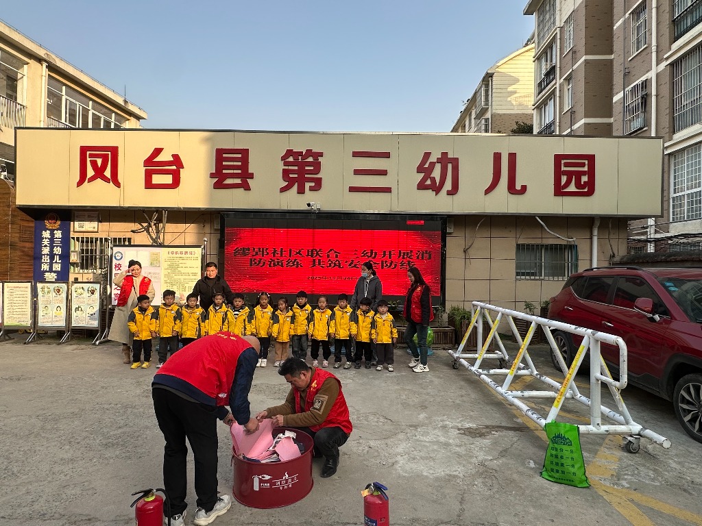 本网讯(通讯员 胡依玥 缪保娟)11月24日,笔者从凤台县城关镇缪郢社区获悉,该社区关工委组织两位社区“五老”人员,走进县第三幼儿园,在幼儿园大门口附近举办今年第四期消防安全应急演练活动。
