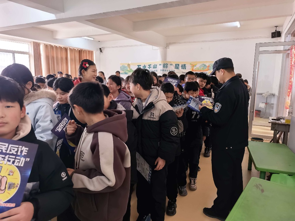 外面寒风四起,室内温度如春。警官王欣雨带领民警一边给师生们发放宣传单页一边叮嘱着学生们:年关节假日不要大意,不轻信,不转账,不要相信“天上会掉馅饼”。