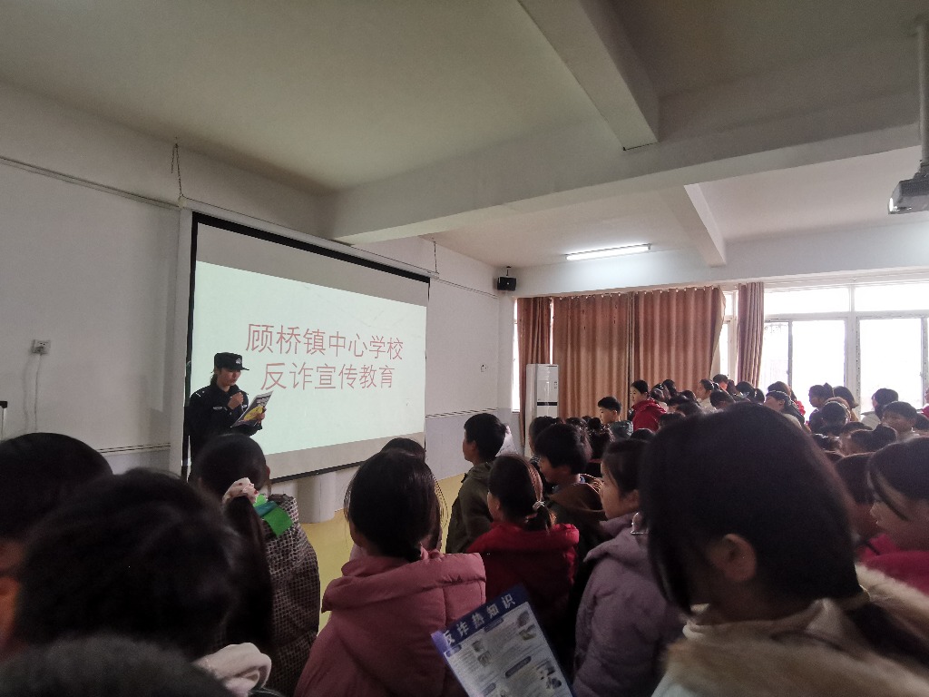 本网讯(通讯员 刘爱军)为了提升学生防诈防骗意识。元旦前夕,凤台县顾桥镇派出所的民警,来到镇中心学校给全体师生举办防诈骗宣传讲座。