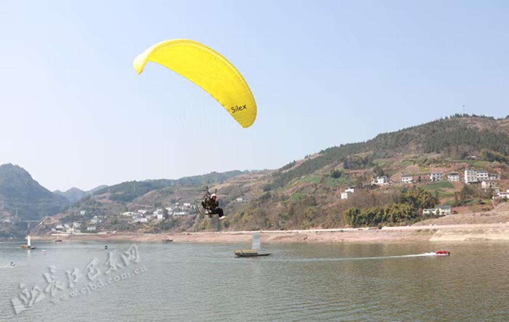 嗡嗡嗡……轮式动力滑翔伞划破宁静的湖面,时而高空飞旋、时而低空掠过,山川、湖泊、村寨……尽收眼底。“往下看,神农湖就像一幅徐徐展开的山水画,感觉非常棒。”游客张燕莉意犹未尽地说,三年没回老家过年,这次回来不仅和家人团聚,更看到了家乡的变化,原来的一片荒滩,如今成了旅游打卡地。