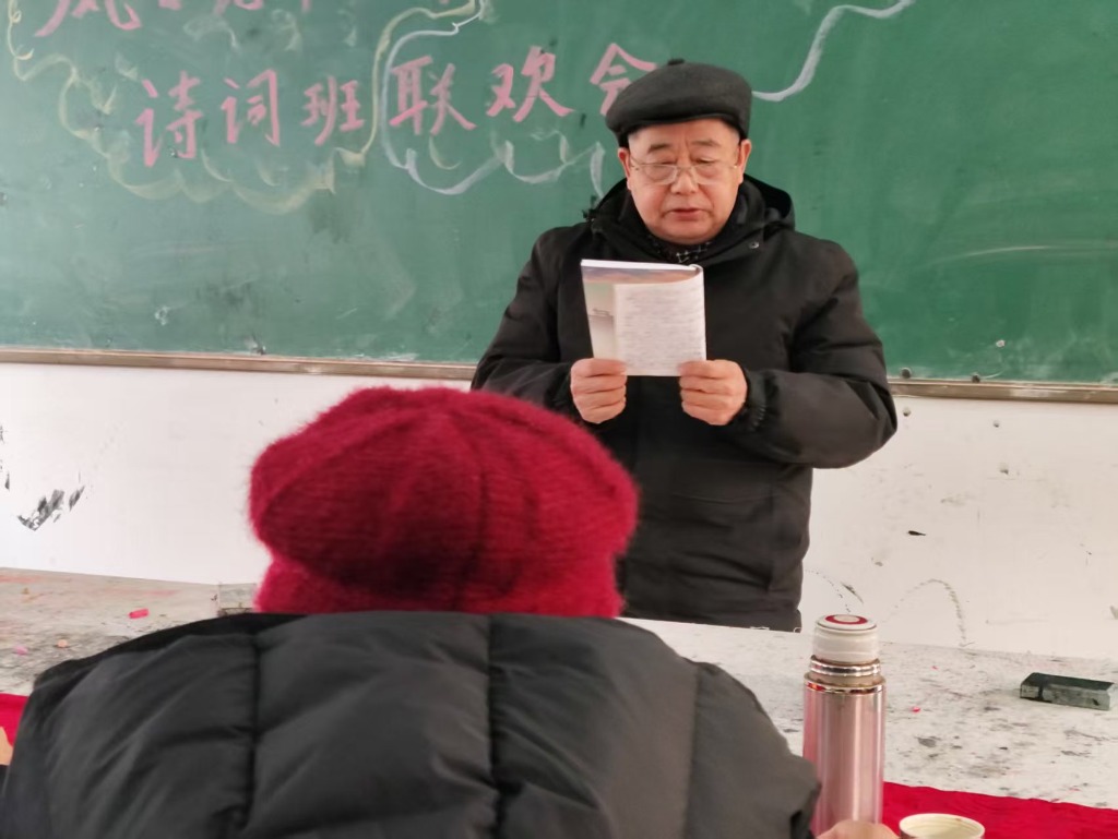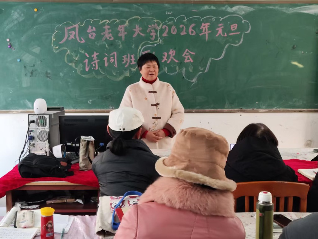 本网讯(通讯员 胡仲昌)12月17日,阴冷。这一天,在凤台县老年大学老校区二楼教室里,热意浓浓,诗词班的近20名学员,举办了以“我们的节日——元旦”为主题的迎新年诗词朗诵会。