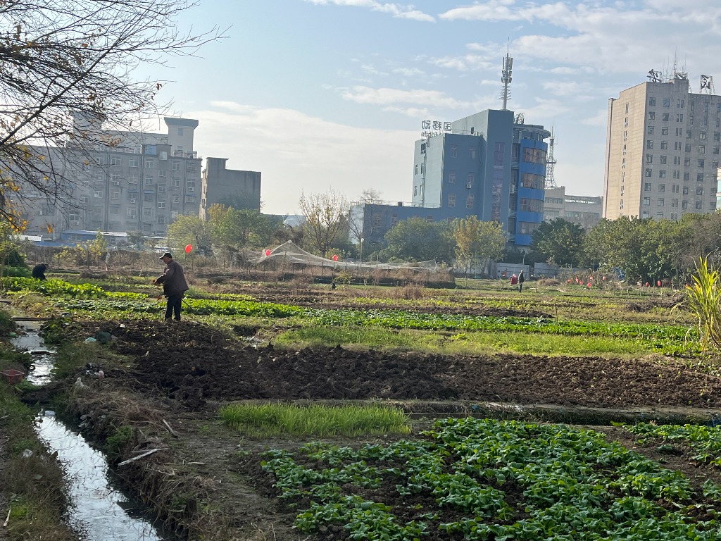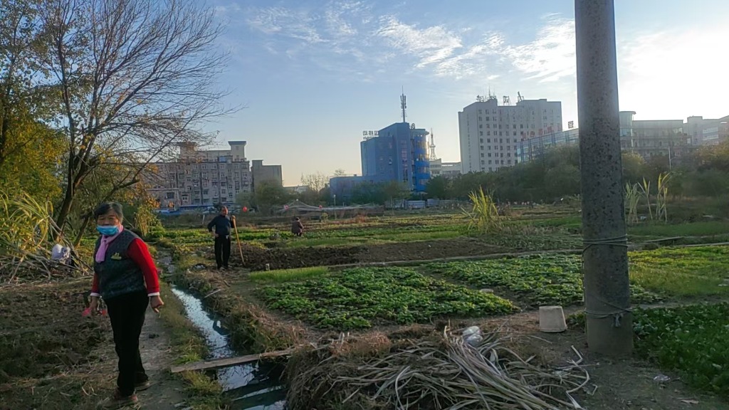 在老村庄马场桥头中心路北侧农家小菜园里,社区网格信息员每日三班对该地块进行巡查,从地东头到地西头,查看是否堆放各种秸秆和杂草等。