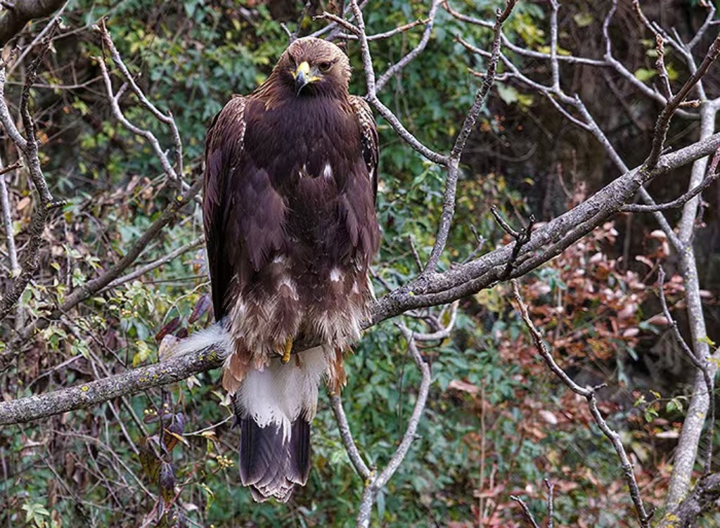 2025年11月22日,湖北巴东金丝猴国家级自然保护区工作人员在日常巡护中,近距离拍摄到国家一级重点保护野生动物金雕的清晰影像,直观印证了三峡库区生物多样性保护的显著成效。