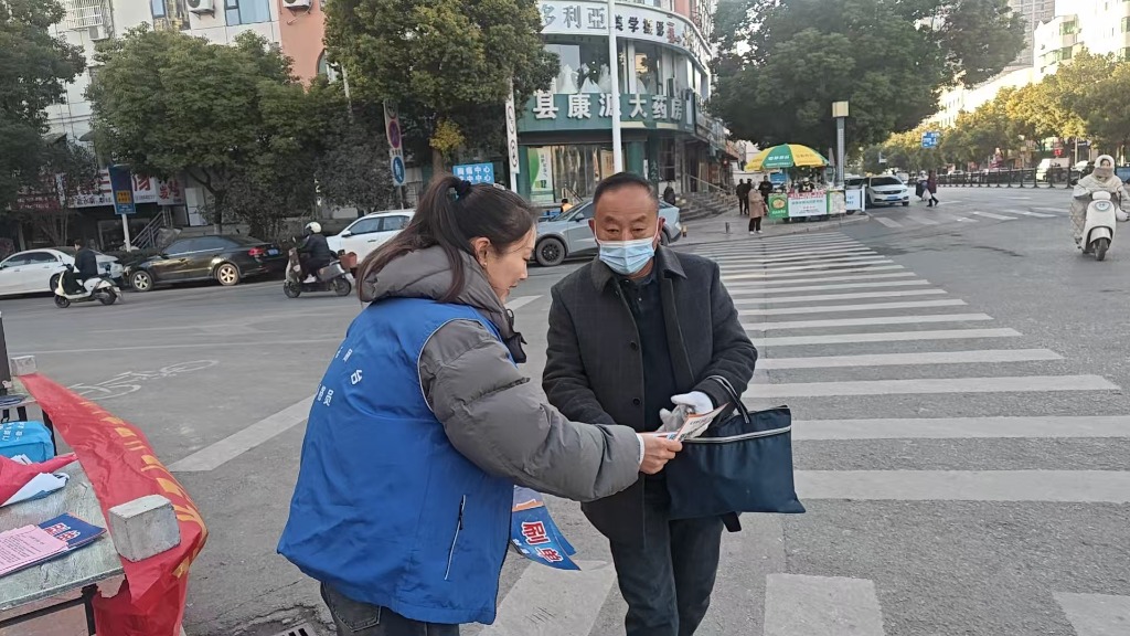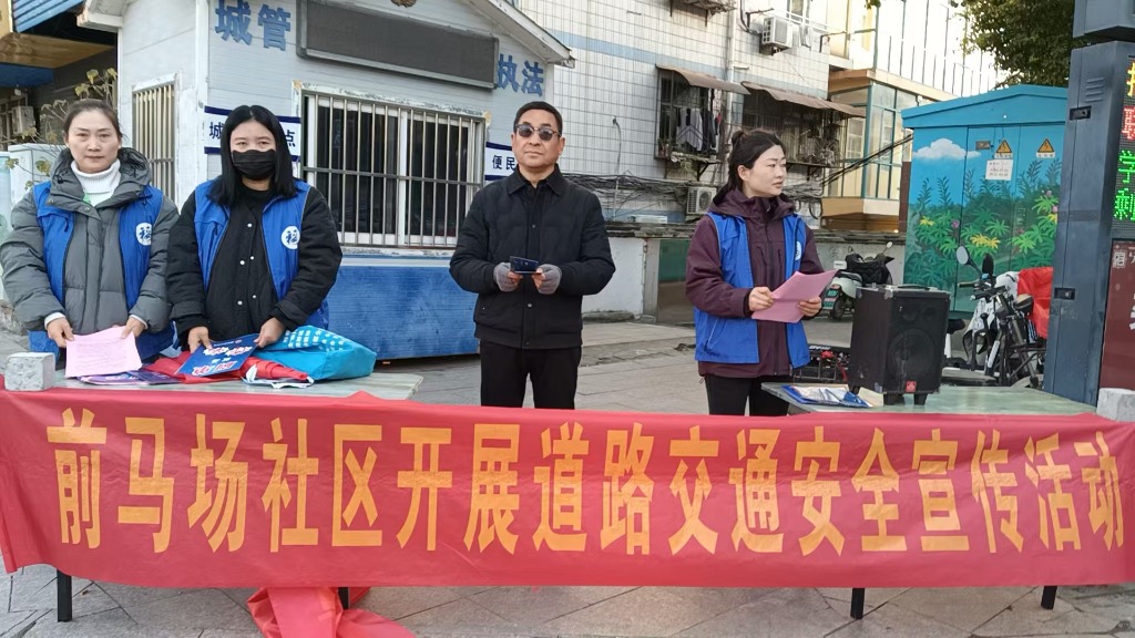 本网讯(通讯员 胡仲昌 胡依玥)12月16日,凤台县城关镇前马场社区组织各网格志愿者走上街头,在马场桥头以东的三岔路口斜对过凤台电大大门口西侧,向过往的群众发放各类宣传资料,大力宣传道路交通安全知识。