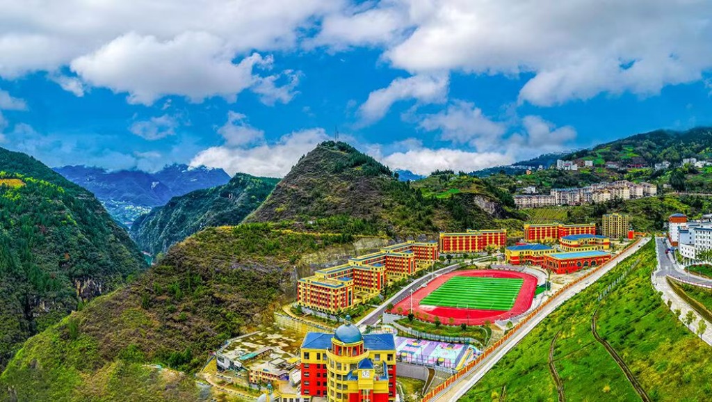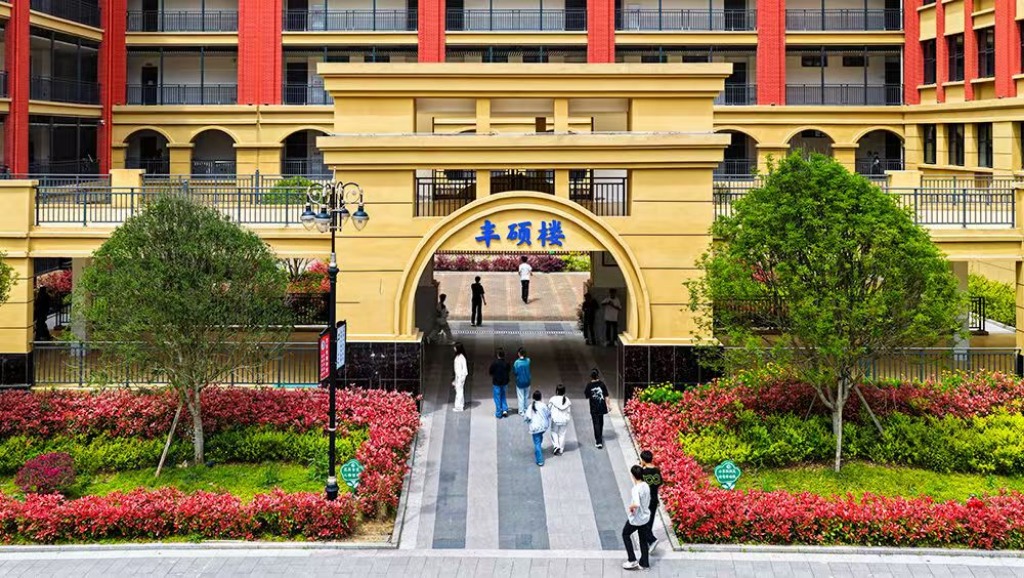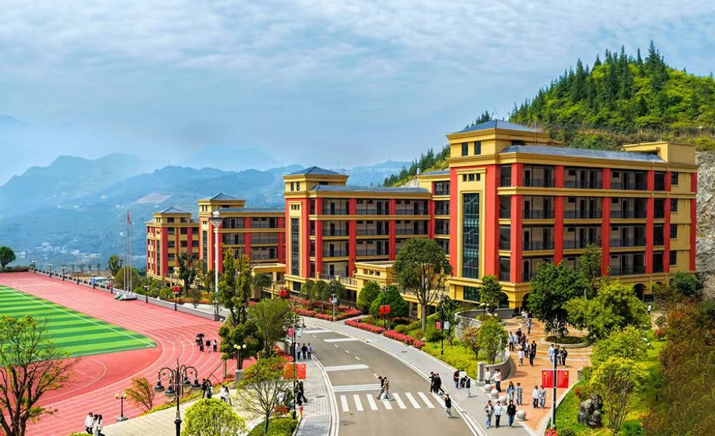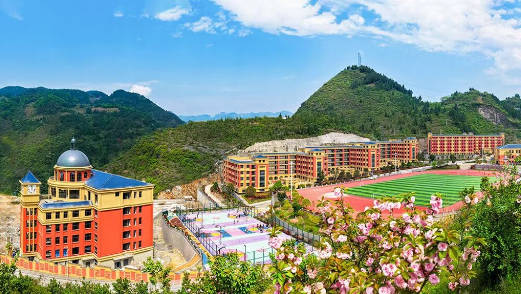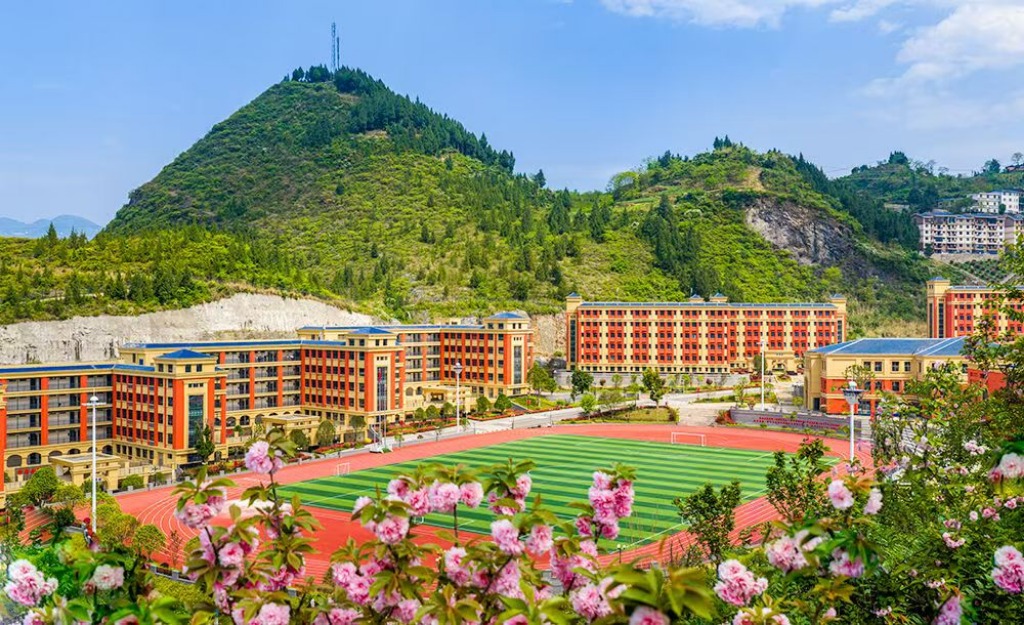 春日里繁花盛开、草木葱茏,蓝天白云下,明快的建筑与青山秀色相映成趣,既尽显巴东山乡的灵秀壮阔,又彰显书香校园的蓬勃朝气,成为山区教育发展的亮眼新地标。