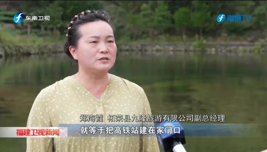 柘荣县九隆旅游有限公司副总经理郑海霞:高铁站离我们景区直线距离不到三百米,就等于把高铁站建在家门口,方便了游客来我们这里游玩,我们准备提升设施,增加漂流项目,让游客玩得更加舒心。