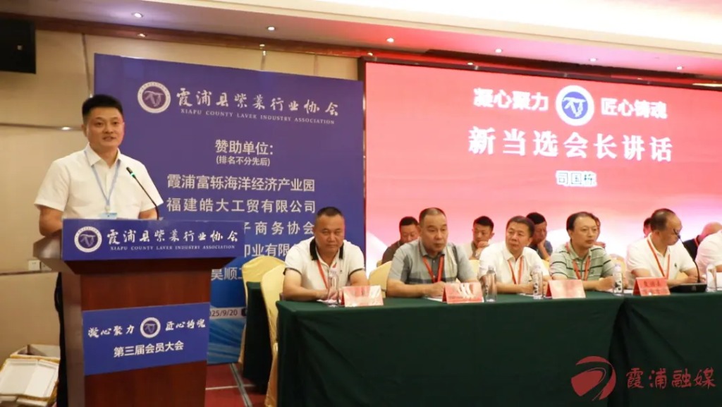 9月20日,霞浦县紫菜行业协会第三届会员大会召开。全县紫菜行业代表共聚一堂,共商行业发展大计,同绘产业未来蓝图,携手推动霞浦紫菜产业高质量发展迈向新阶段。县委常委、统战部部长叶小舜参加会议。