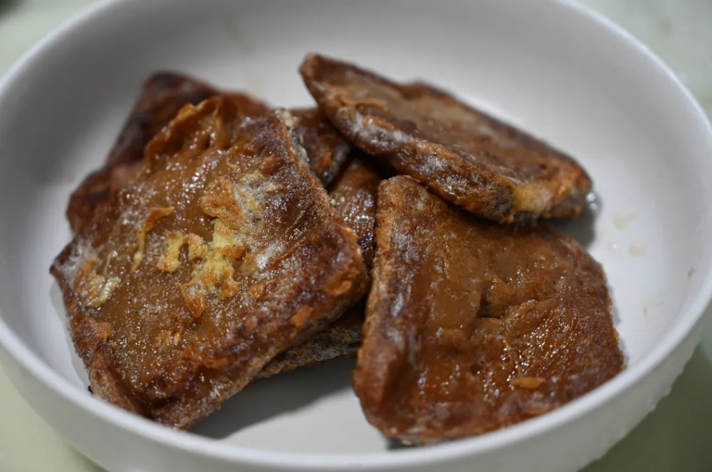 裹上鸡蛋液,煎至香甜绵软