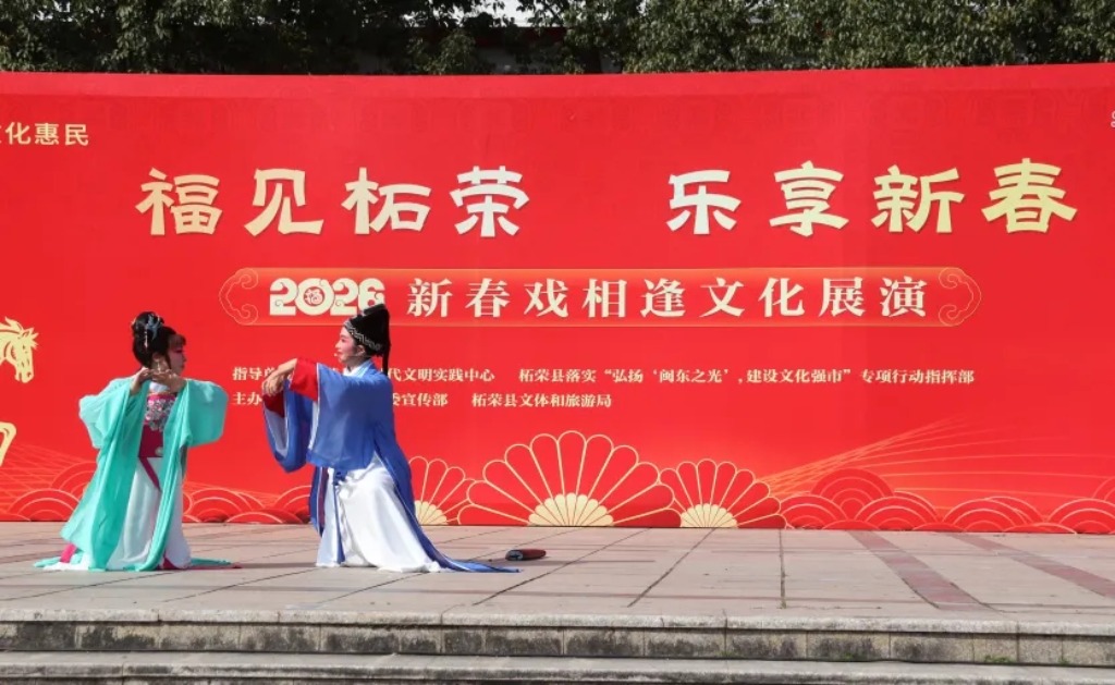 2月19日,“福见柘荣 乐享新春”2026年新春戏相逢文化展演越剧专场演出在柘荣县仙屿公园上演,吸引了众多市民观看。
