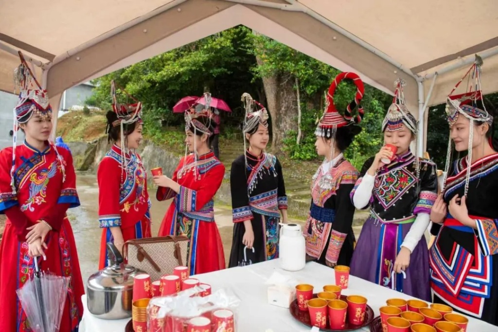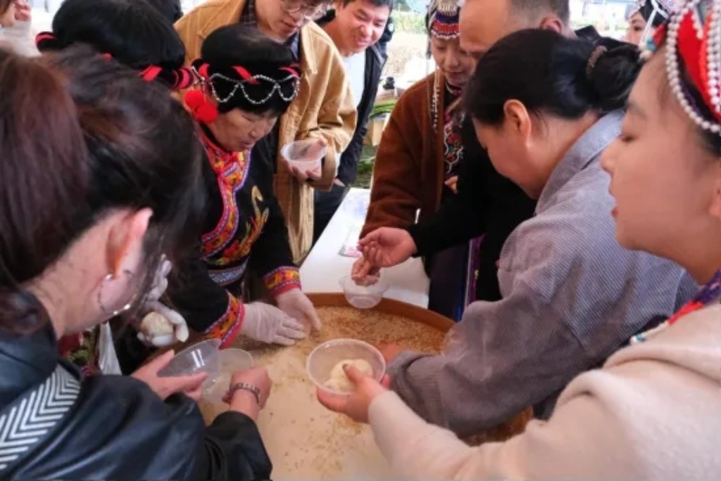 活动现场还设置了丰富多样的沉浸式体验项目。嘉宾游客们不仅可亲手体验畲族刺绣等非遗技艺,试穿精美凤凰装拍照留念,更在节奏欢快的竹竿舞中感受畲族文化的活力。畲家特色美食品鉴、山歌对唱互动、传统美食制作等项目,也让参与者在实践中进一步触摸畲族文化的温度与魅力。