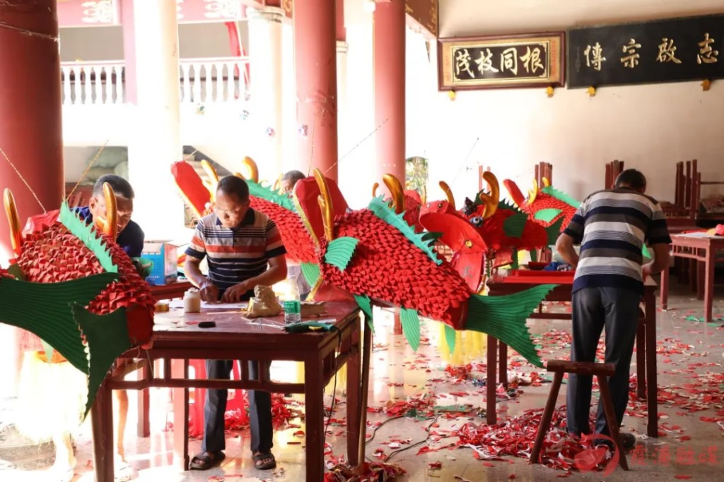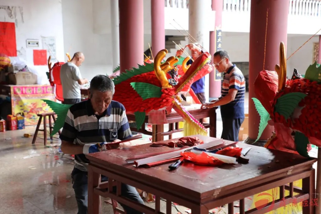 中秋佳节临近,牙城镇箩伍村的村民们正忙着赶制传统非遗项目——杨氏鱼灯,为即将到来的中秋团圆夜鱼灯表演做准备。